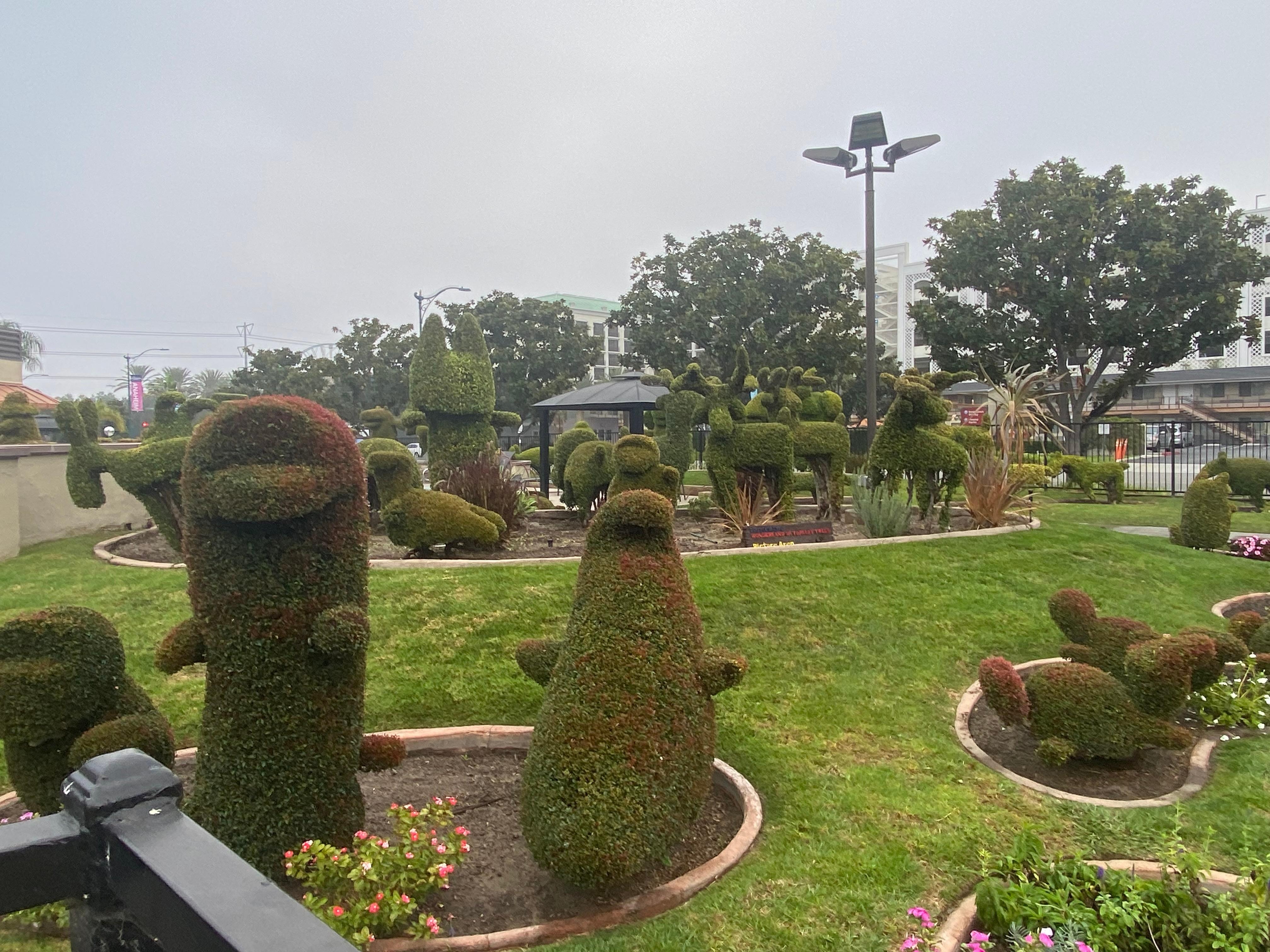 Everything was excellent! From check in to check out. Our room was ready upon check in at 7am, after checking in we could eat breakfast which was a full hot meal. At checkout they held on to our bags until our ride arrived to pick us up. What I liked most was I felt safe at all times, there was no homeless hanging around like there was on Harbor blvd the last time we visited Disneyland and the hotel staff was very pleasant. My kids enjoyed the pools, hot tubs and Topiary gardens. I’ll definitely will be booking my next stay here when I get home and recommending it to my family and friends.
