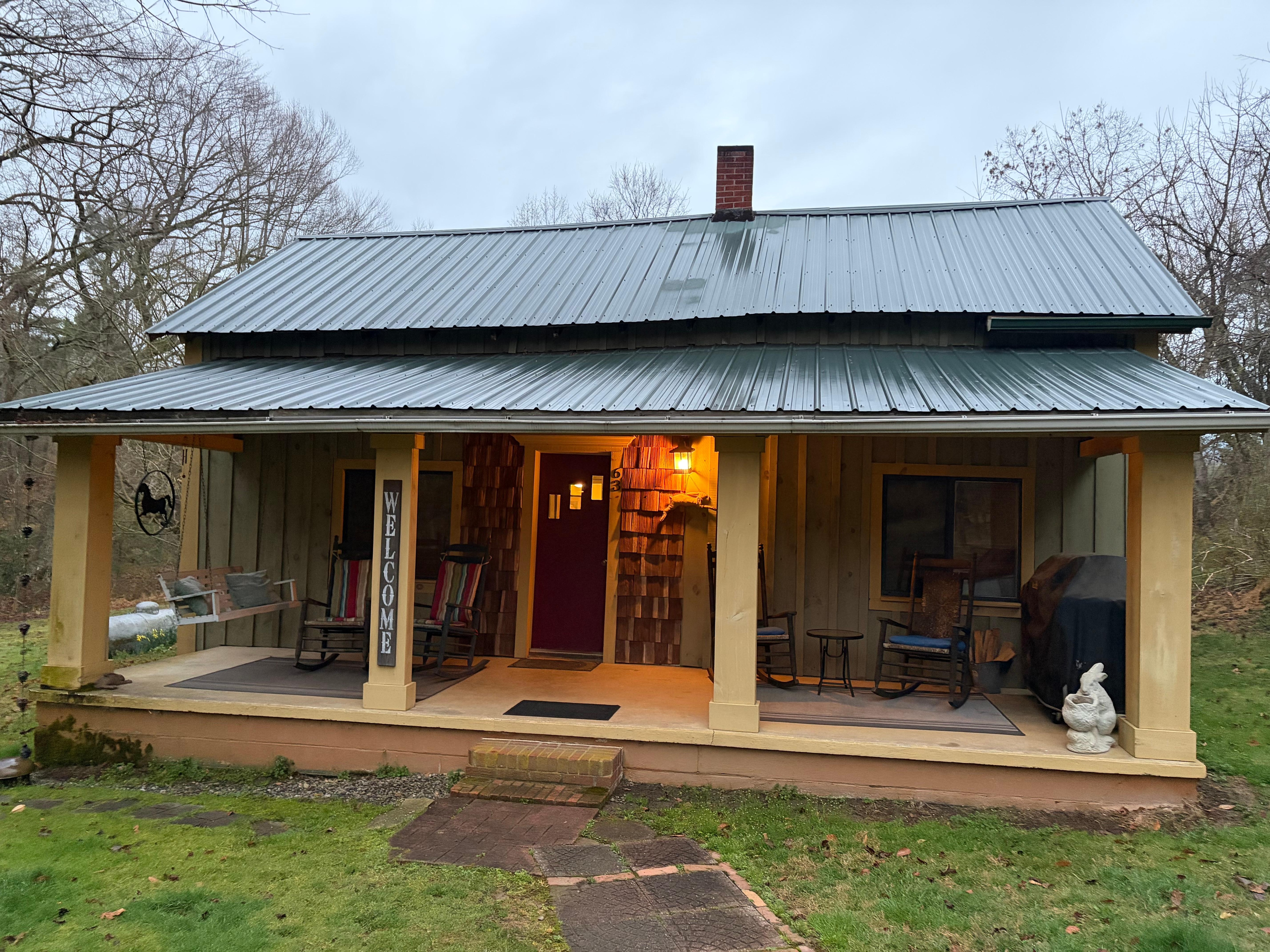 "Rabbit Hollow Cottage" our quaint pet friendly mountain cottage on 7 private acres in beautiful Western North Carolina, 15 minutes from Asheville awaits your arrival. The newly remodeled cottage built in the late 1800's with modern conveniences such as central air, heat and gas logs. The cottage has 3 bedrooms; 2 queen beds and 2 twin beds and will accommodate 6 comfortably. With memory foam mattresses, new crisp linen and cozy bedding.
