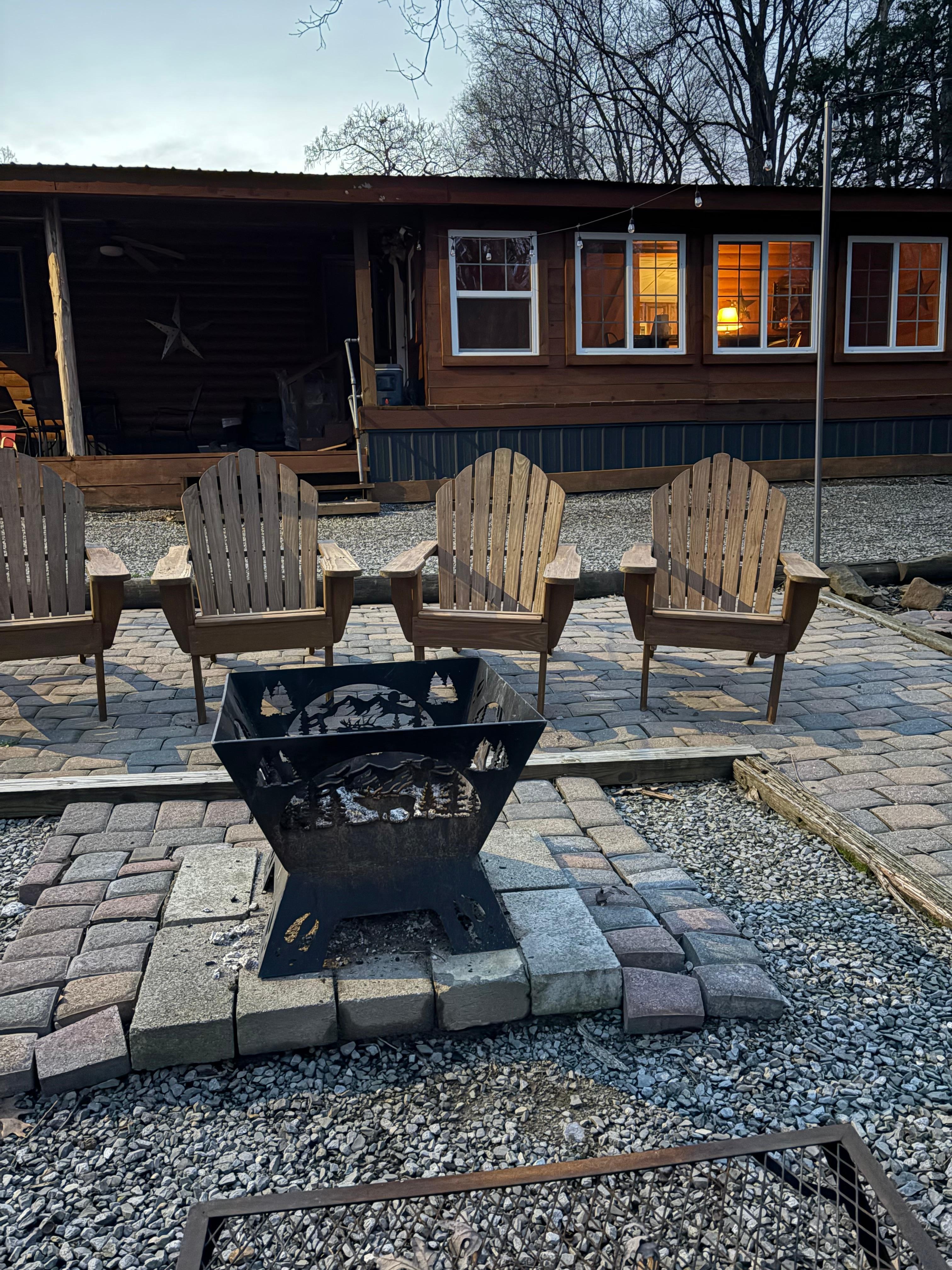 It is located on our small hobby farm and just above a small creek. Outdoor spaces include a covered patio and a paver patio with a firepit for you to enjoy. Close to Garden of the Gods, Rim Rock, Pounds Hollow Lake with a beach for swimming and the Iron Furnace, Cave in Rock and the river ferry to Kentucky are an easy drive away. Adjacent to the forest for easy access to trails for hiking and horseback riding. Bicycle trails at Glen O Jones Lake, a few miles away.