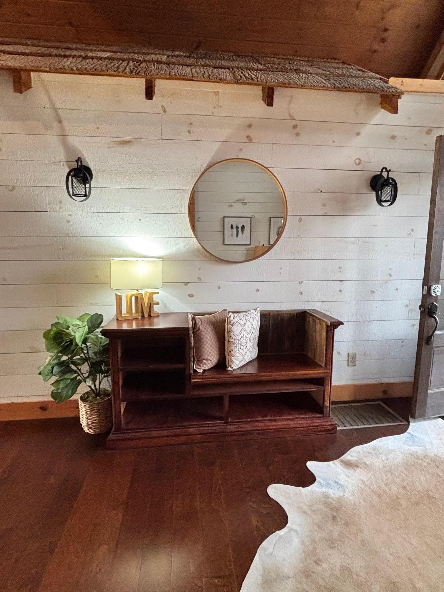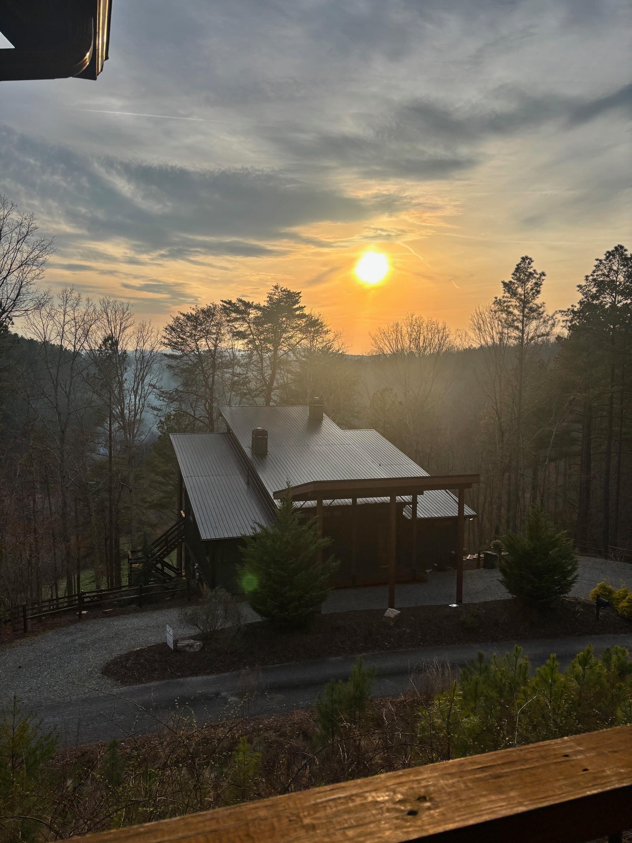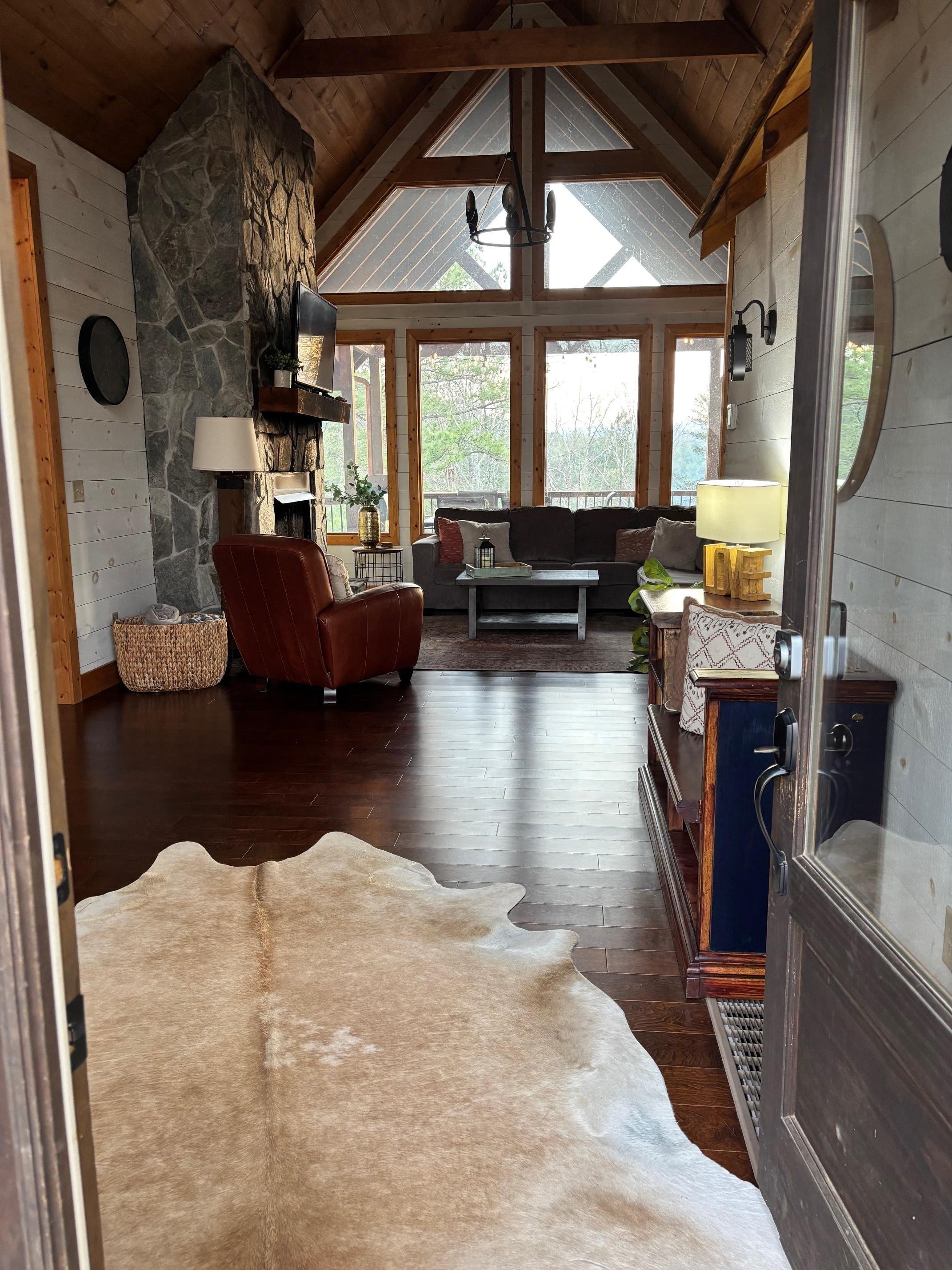 Woodhaven Retreat is a beautiful, modern rustic cabin in a private community with paved roads, abounding nature, and beautiful sunsets, all surrounded by the majestic Blue Ridge Mountains. With an open floor plan and plenty of windows for natural lighting, there’s a lovely view wherever you look. The cabin’s interior feels cozy yet spacious, furnished with the modern amenities and decorated to feel warm and inviting.