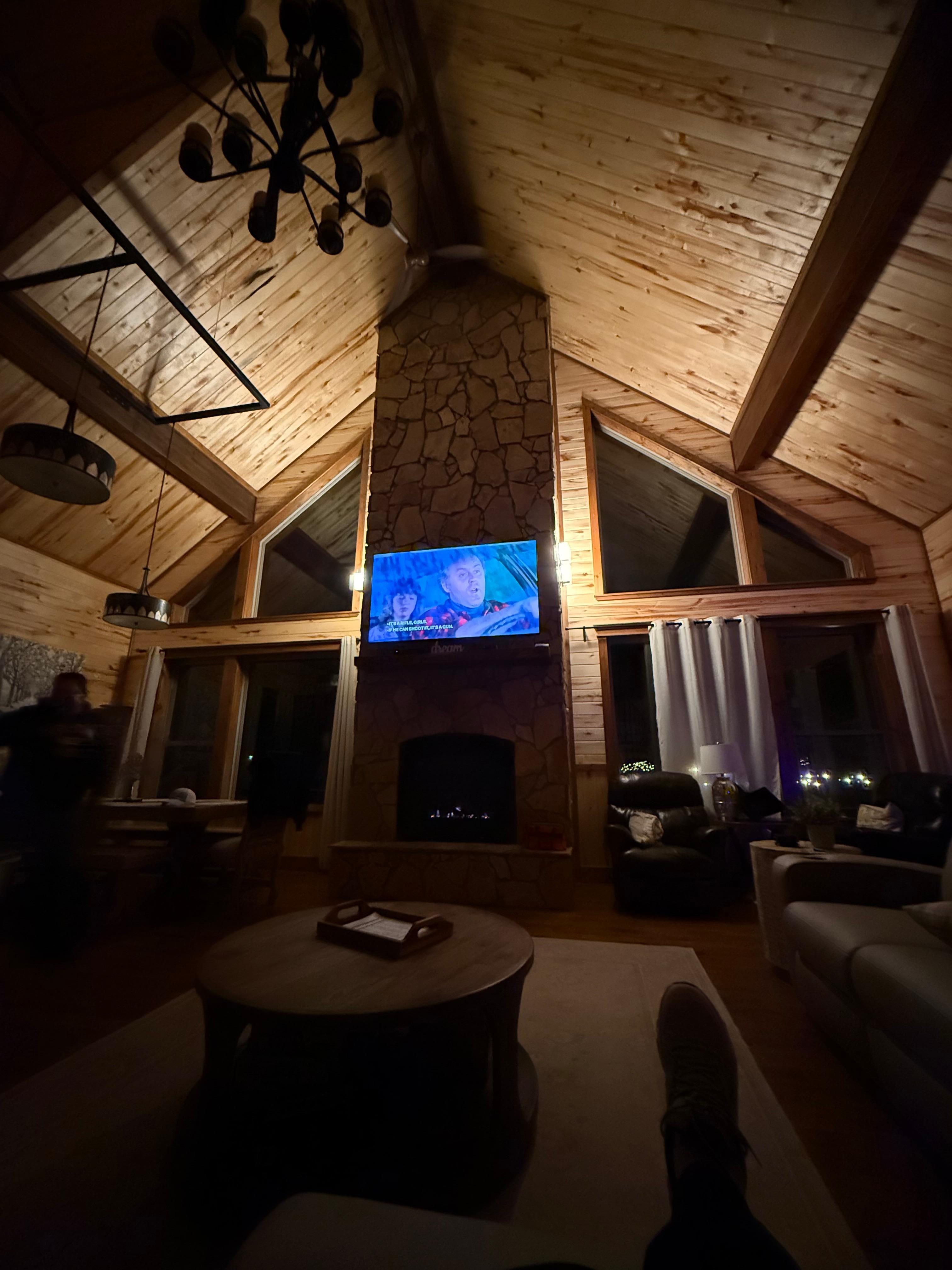Outdoors you will love the very private wraparound deck overlooking the wooded back yard. There you’ll find a 6 person hot tub and gas fireplace just waiting for you to relax your worries away. Enjoy a game of horseshoes or corn hole for even more fun! Dream House also has an amazing fire pit area nestled among trees on a stream. The perfect place to hang out with friends and family… and of course, enjoy s’mores.