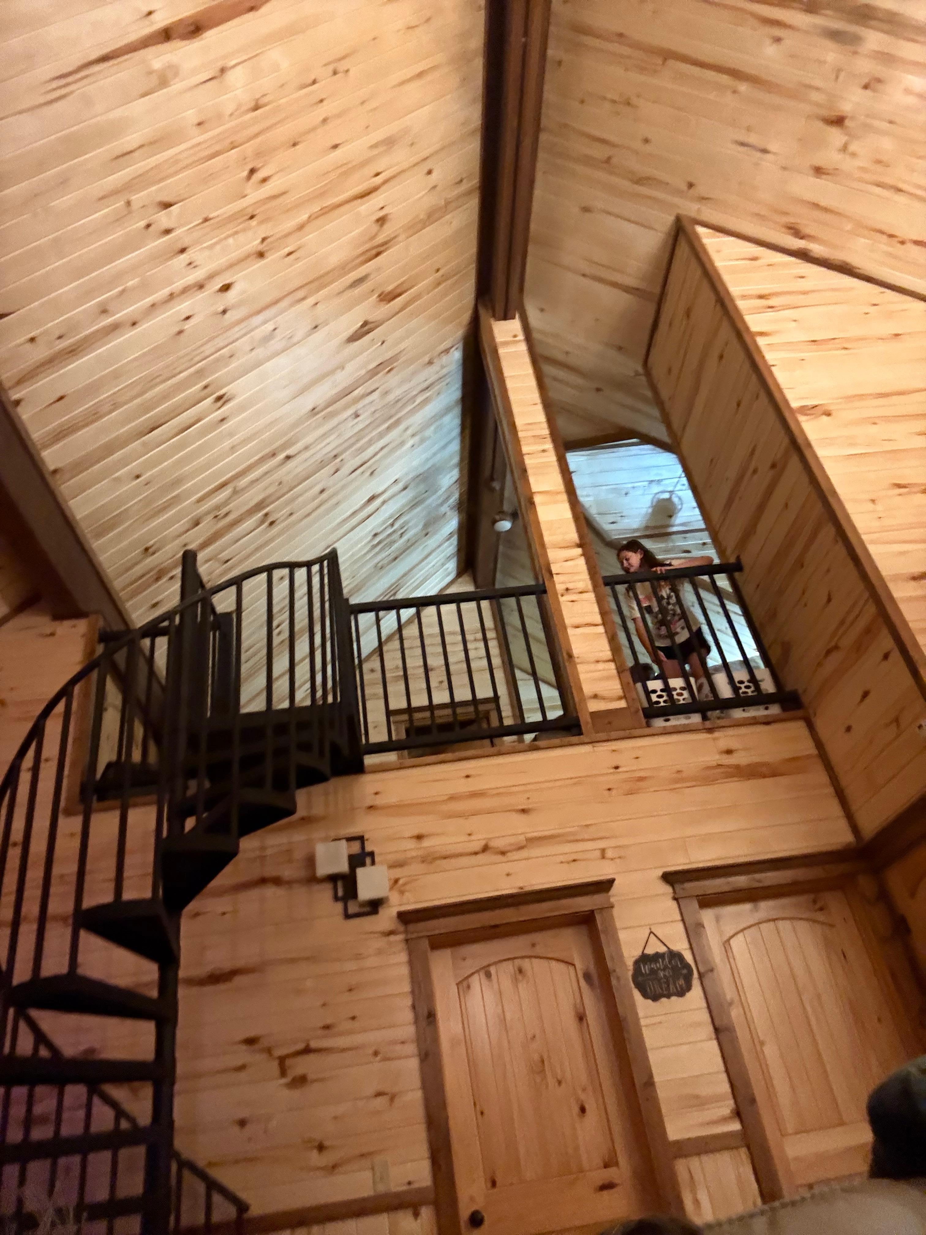 Enjoy a second King suite and full bathroom downstairs as well as a sofa sleeper in the living area for an additional 2 guests. Up the spiral staircase you will find a private loft with spectacular views of the forest outdoors through the two story wall of windows. The loft features a Queen suite with its own private full bathroom, Foosball table, Smart TV, gaming console and sitting area.