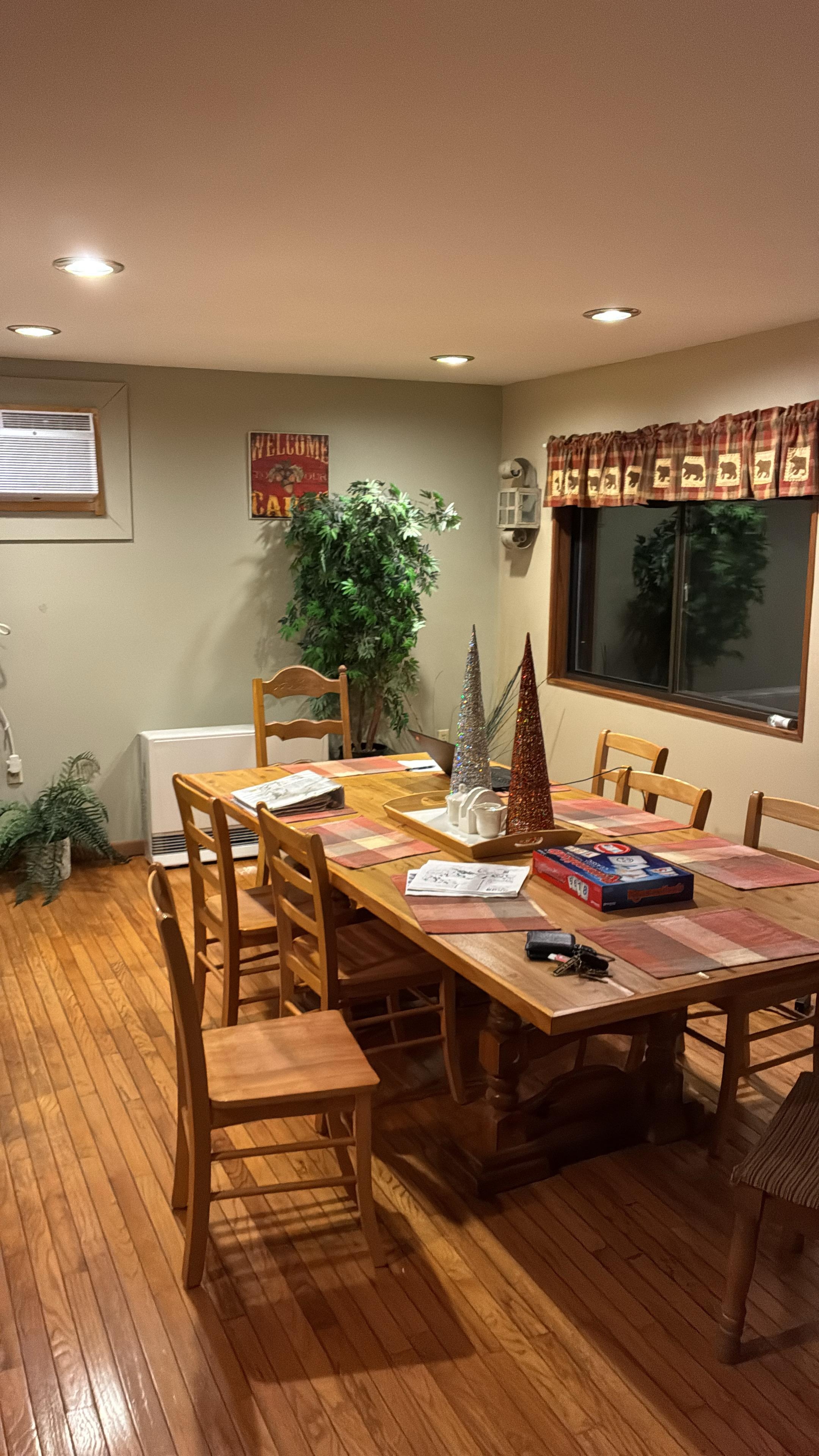 Lower level game area/ bedroom suite with walkout to deck. Has its own small kitchenette- a big favorite with our guests. This is a huge cabin - over - 2,900 sq ft of hardwood and tile floors - so a family can spread out and relax.