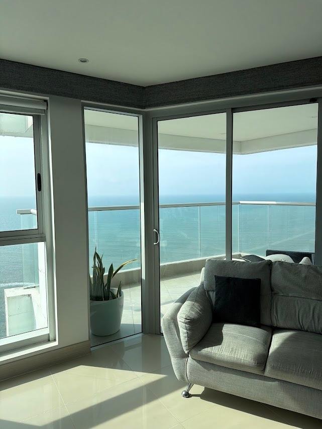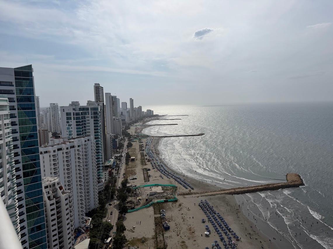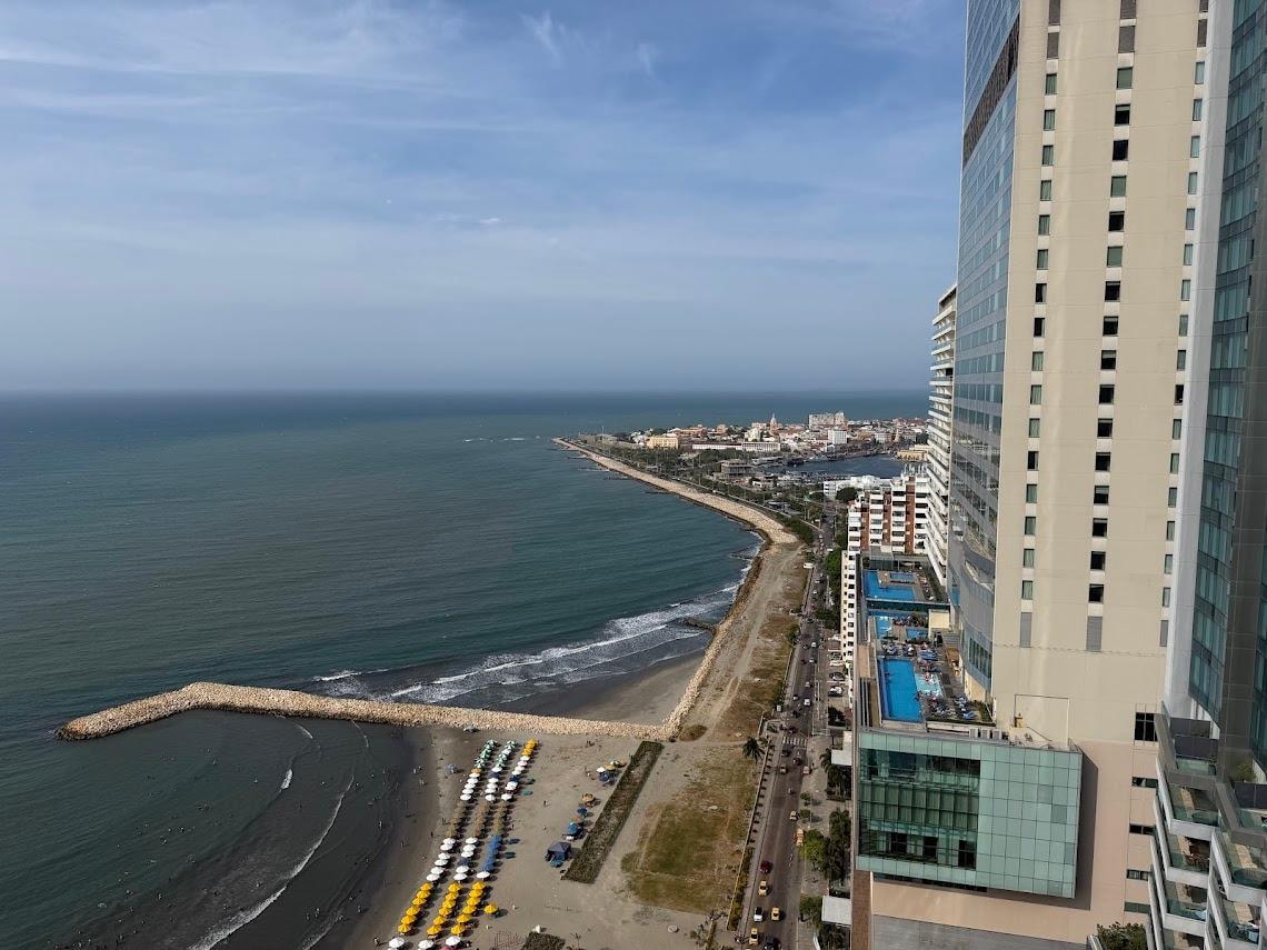 Welcome to our luxurious, unique and exquisite 3 bedroom, 2.5 bath luxury condo with stunning ocean views with private balcony. Experience the pinnacle of style and comfort as you relax on the spacious balcony, enjoying the gentle sea breeze. Fully furnished: high-end furniture, smart home features, motorized blackout blinds, equipped w/ Smart TVs, air conditioning, and all the modern amenities you desire. The building offers a rooftop pool, hot tub, a fitness center, and more. With a prime location, this is the best vacation home in Cartagena for a memorable visit.