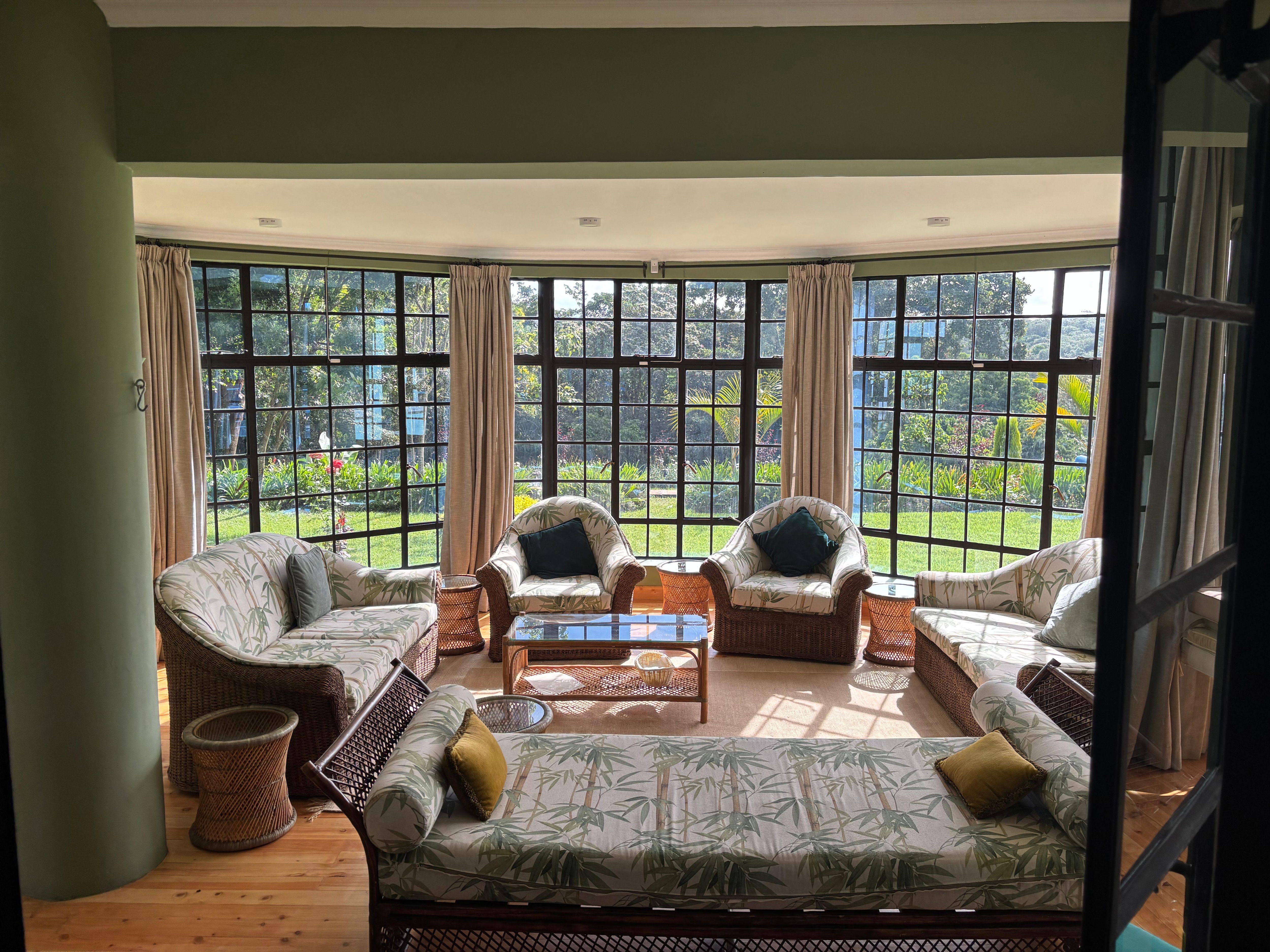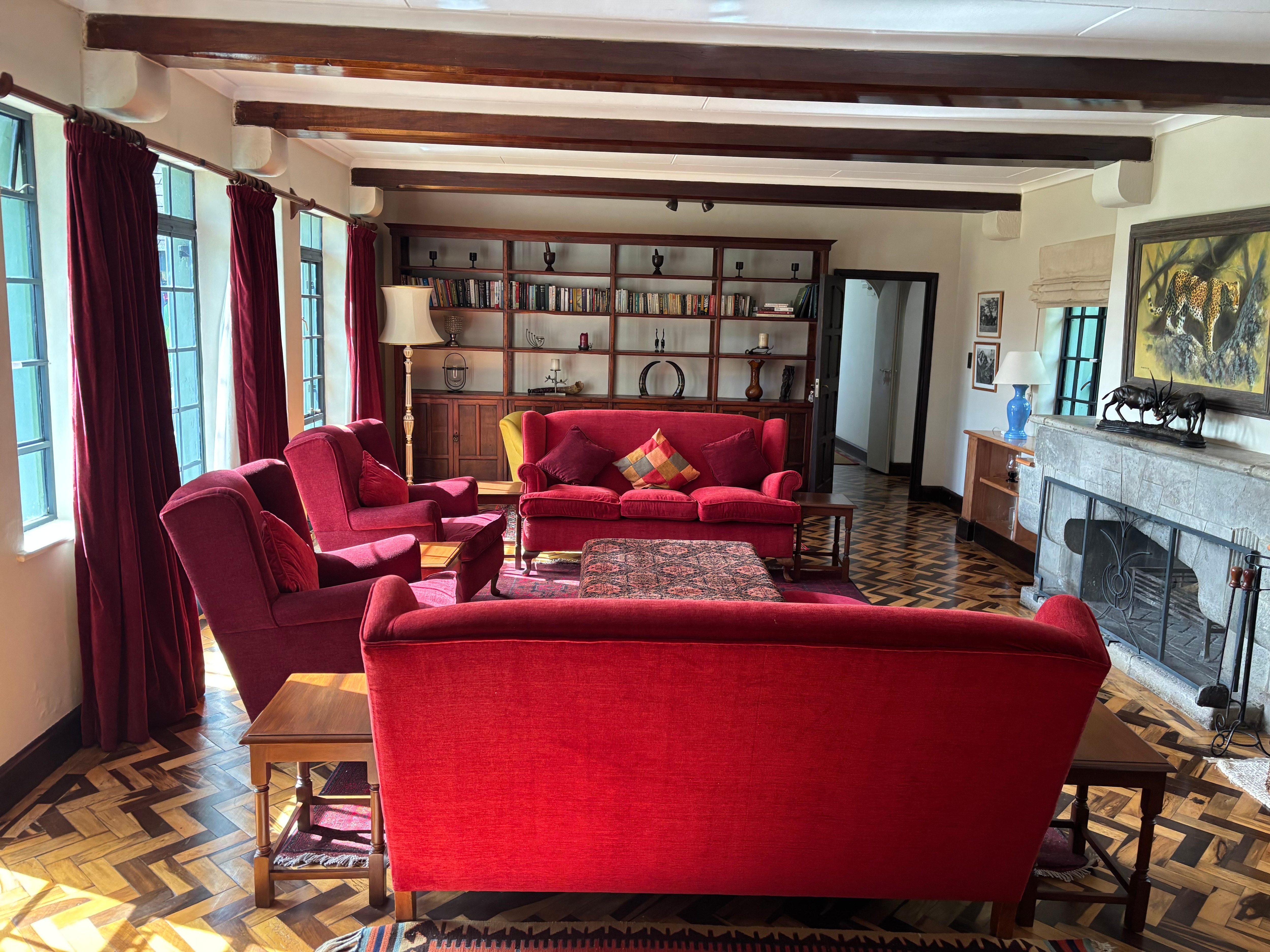 This lovely heritage home consists of five ensuite bedrooms, a living room with a fireplace, a dining room, a fully equipped kitchen and a conservatory. There are also fireplaces in three of five bedrooms and all the spaces in the house look out onto Mt Kenya. Outdoors, you'll find a heated 15m swimming pool with a direct view of the mountain and tennis court. The house can comfortably accommodate up to twelve people and is offered on a self-catering basis, although a cook is available should you need one.