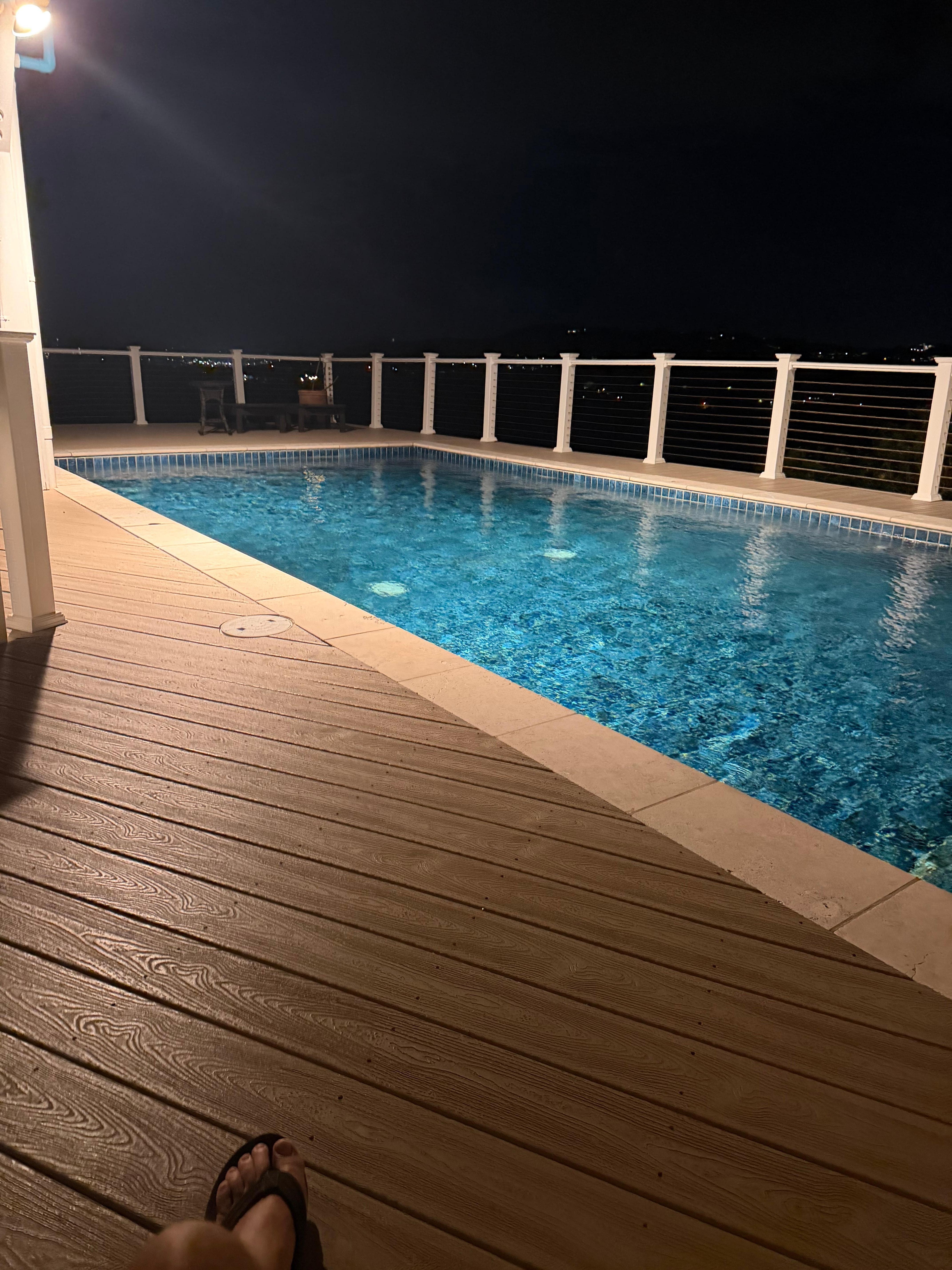 As you step onto the expansive main floor covered patio, prepare to be mesmerized by sweeping views of the Caribbean Sea, including Buck Island. Whether you are sipping a morning coffee while the sun rises or winding down in the evening overlooking the shining lights of downtown Christiansted, these breathtaking views are sure to create lasting memories. You’ll also feel the refreshing trade winds while you take a dip in the solar heated saltwater pool, relax in the 4 person hot tub after a long day, or enjoy a meal on the outdoor dining set. There is a grill available for those who prefer to cook outdoors!