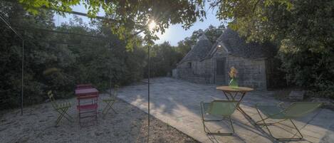 Outside, a charming outdoor dining area invites guests to enjoy the wonderful summer evenings, surrounded by the quiet and beauty of the Apulian countryside. The property is immersed in an atmosphere of tranquility, away from the noise and bustle of the city.