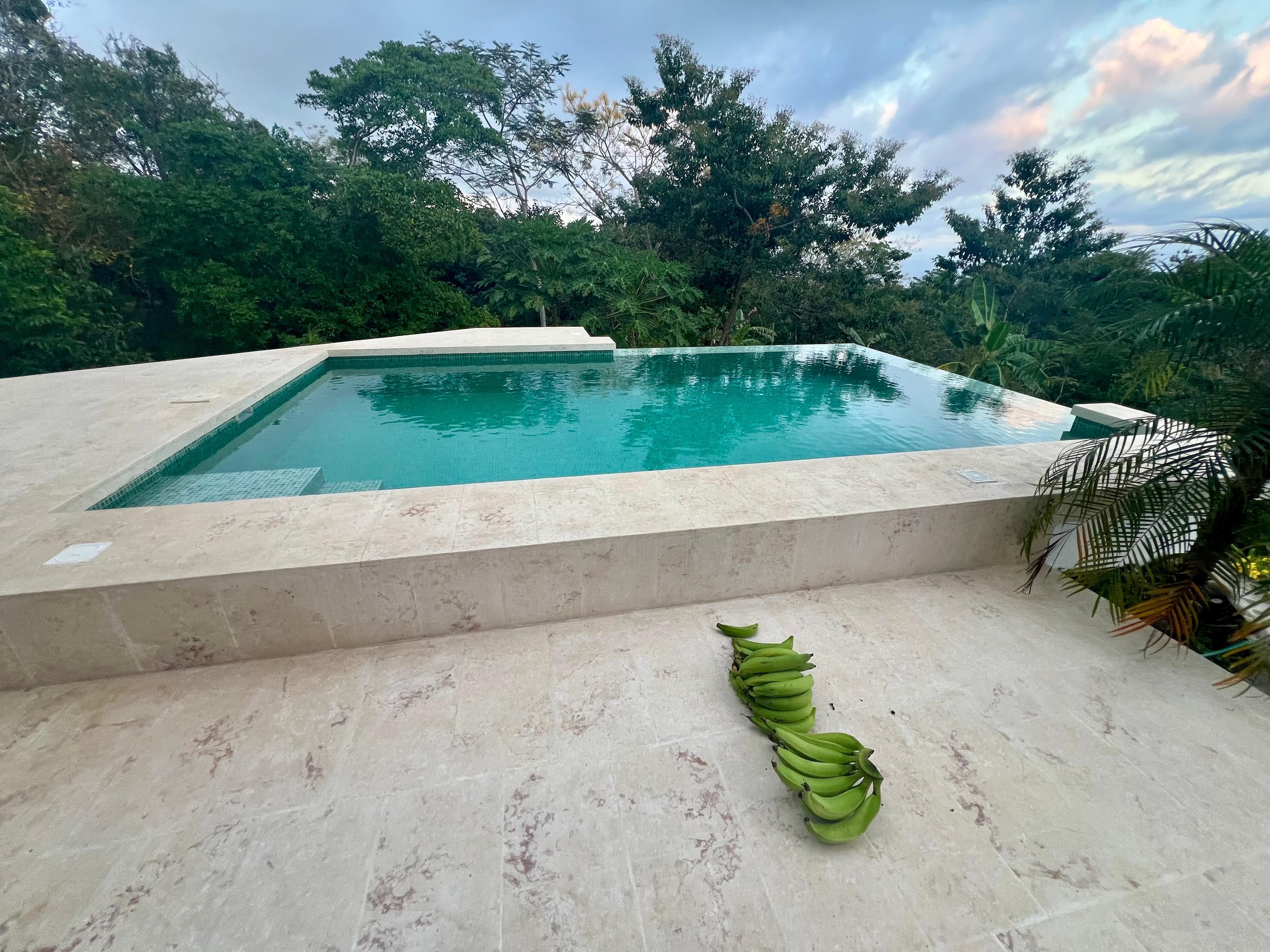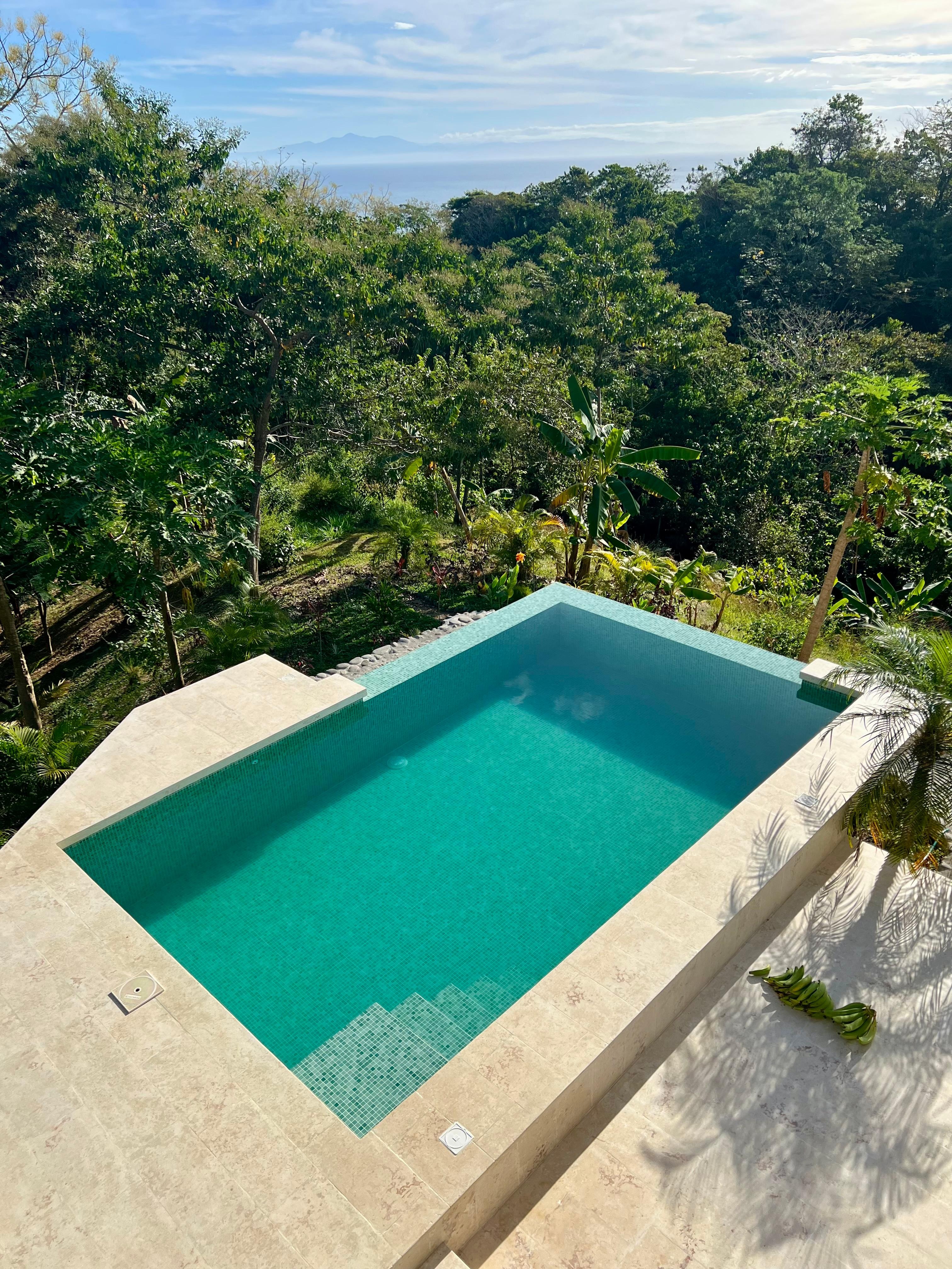 Modern dream villa (newly built in 2025) nestled in lush tropical nature above Playa Cedros closed to Montezuma – offering breathtaking ocean views, an infinity pool, and elegant finishes crafted from local materials. Two luxurious bedrooms with king-size beds, private en-suite bathrooms featuring walk-in showers, and direct access to spacious decks provide stunning views of both ocean and jungle. Expansive panoramic windows flood the interiors with natural light and create a seamless connection between house and nature. On the ground floor, a stylish living room and a fully equipped kitchen with gas stove, oven, and microwave invite you to relax and enjoy; a guest bathroom adds extra comfort. Surrounded by vibrant vegetation and exotic wildlife, this villa is the perfect retreat for those who love both nature and design.