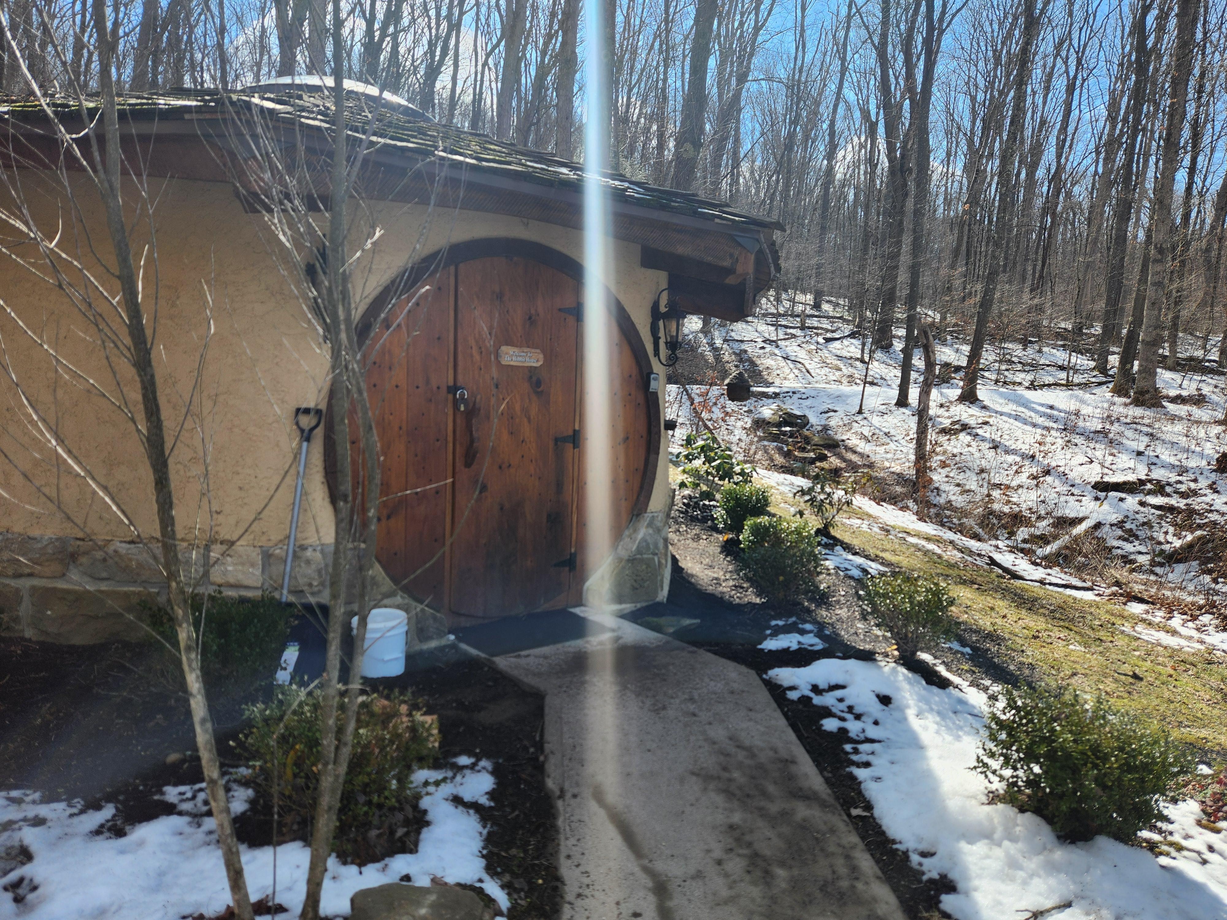 Discover The Hobbit House at Fernstone, a one-of-a-kind retreat where artistry and nature meet. Handcrafted by a master local carpenter, it features a stunning reciprocal rafter ceiling, and black walnut furniture. Nestled among ferns, ponds, and trees, the home invites quiet exploration of the Laurel Highlands. Includes a tiled shower, fully appointed bath, and magical design details throughout—perfect for couples or intimate escapes.