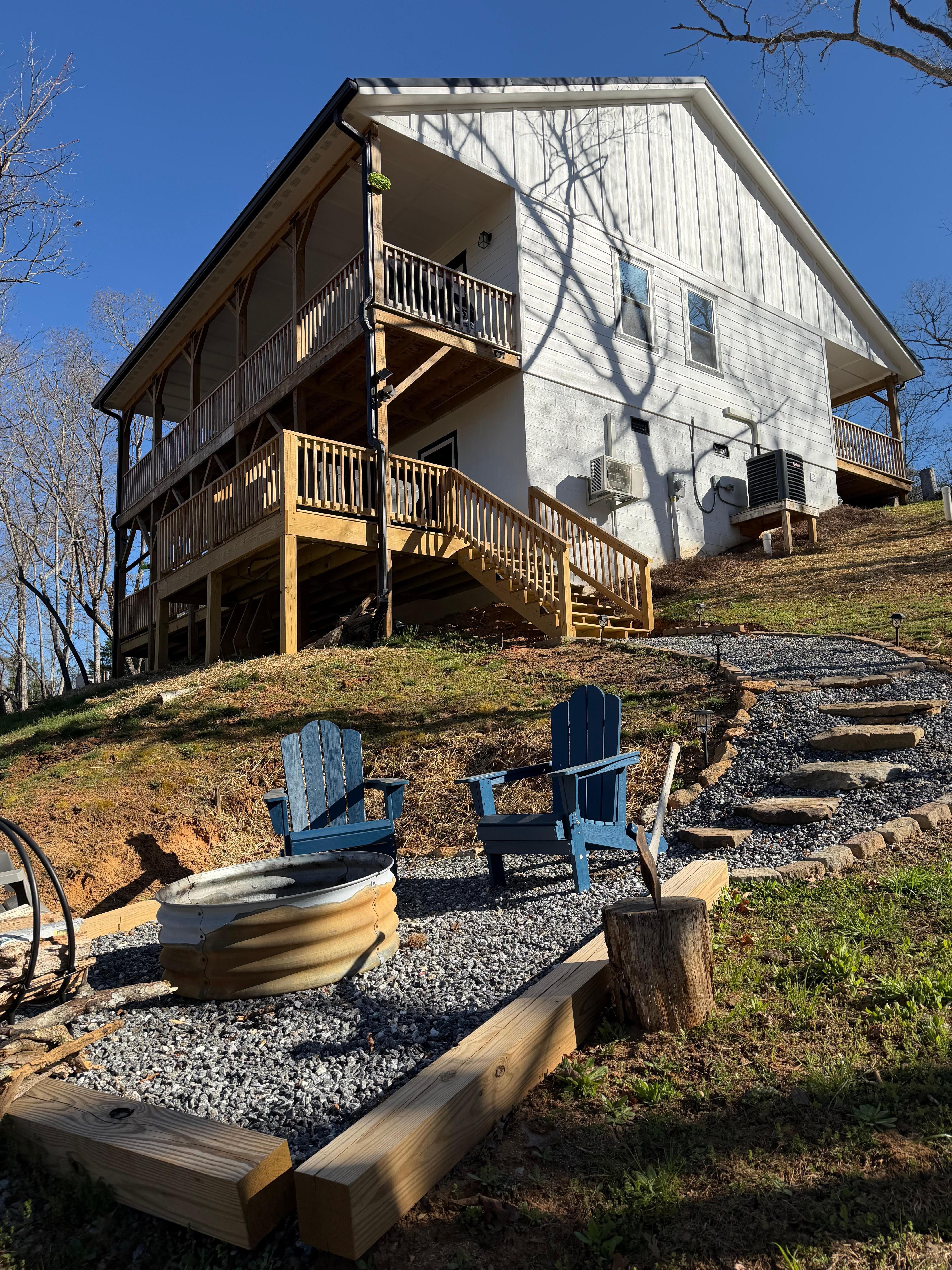 * Just up the driveway to the left past the well house, guests will find a shared community gathering area featuring a fire pit with long-range mountain views, a ping-pong table, and the trailhead for private on-property hiking. It's a great spot to relax, enjoy the scenery, and add a little extra outdoor fun to your stay.