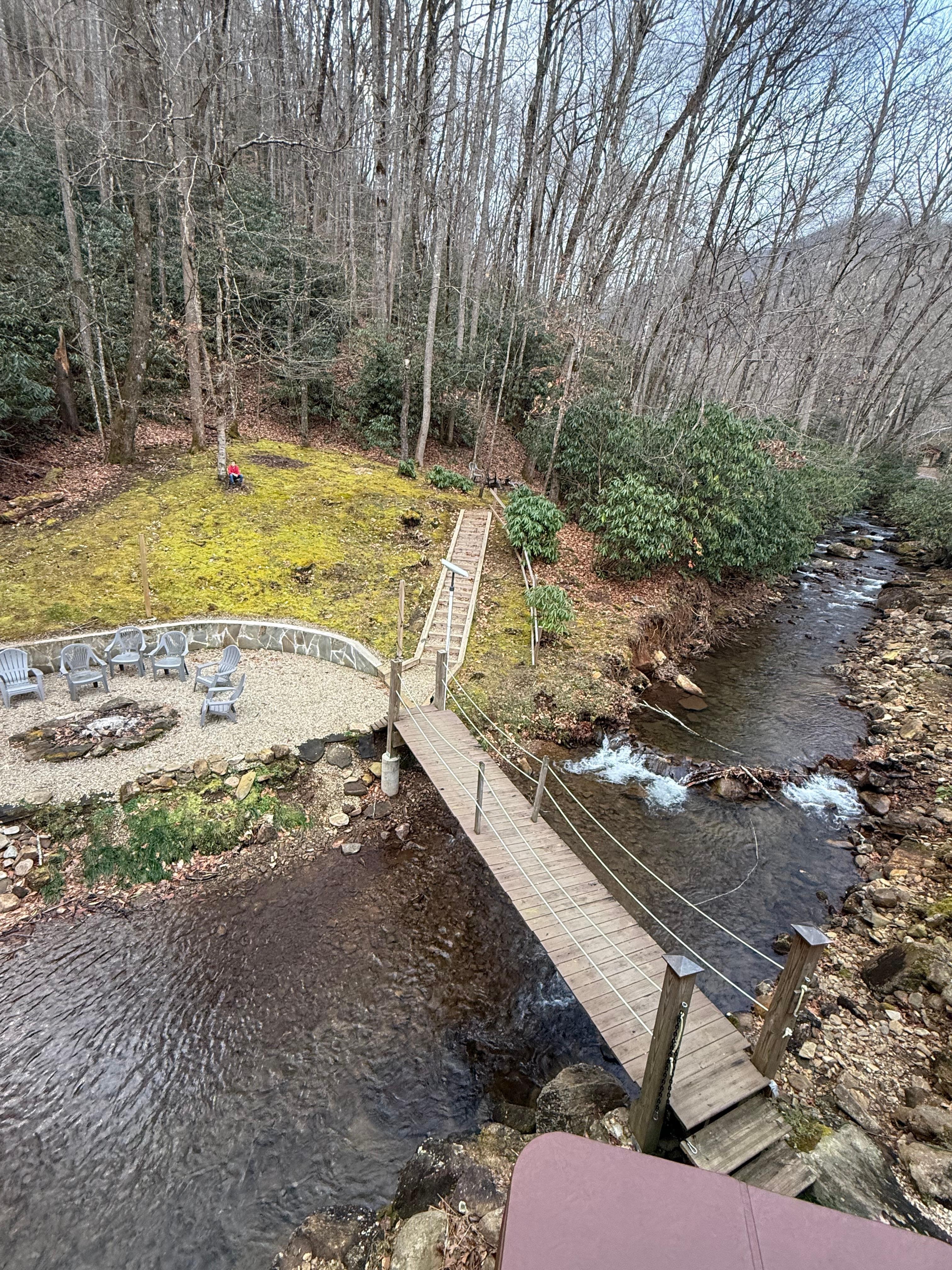 This place was amazing. The creek running through the property is awesome. The bridge ro cross to.the fire pits is what sets this spot in a place of its own. We are already planning another trip. Super large bedrooms and the tub upstairs is great for a relaxing bath.