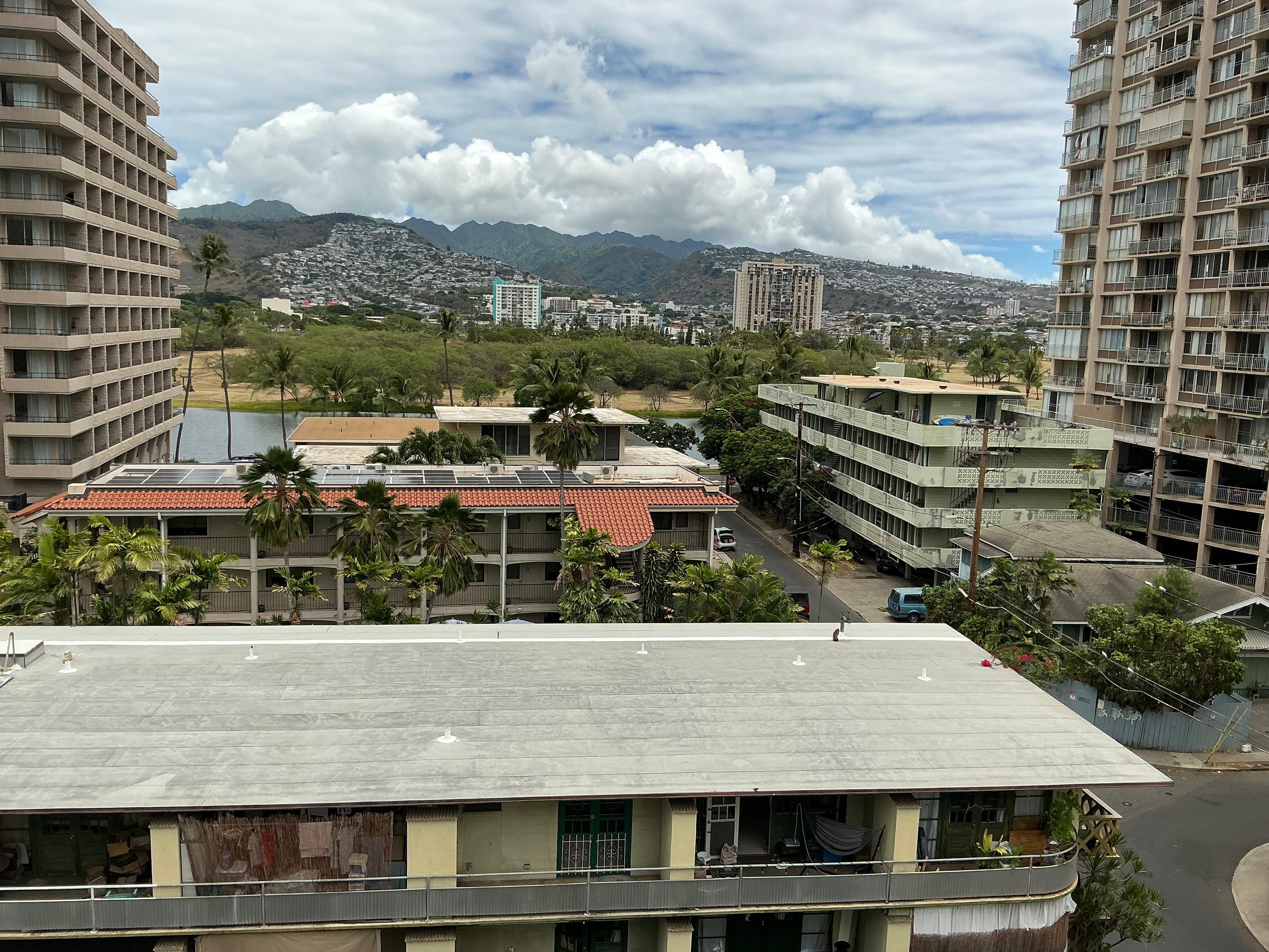 Spacious apartment , great balcony with a beautiful view to the Ala Wai canal and golf course . Solid building and very clean and quiet and excellent location close to the best Waikiki can offer. The lady who manages the building is a real Angel.