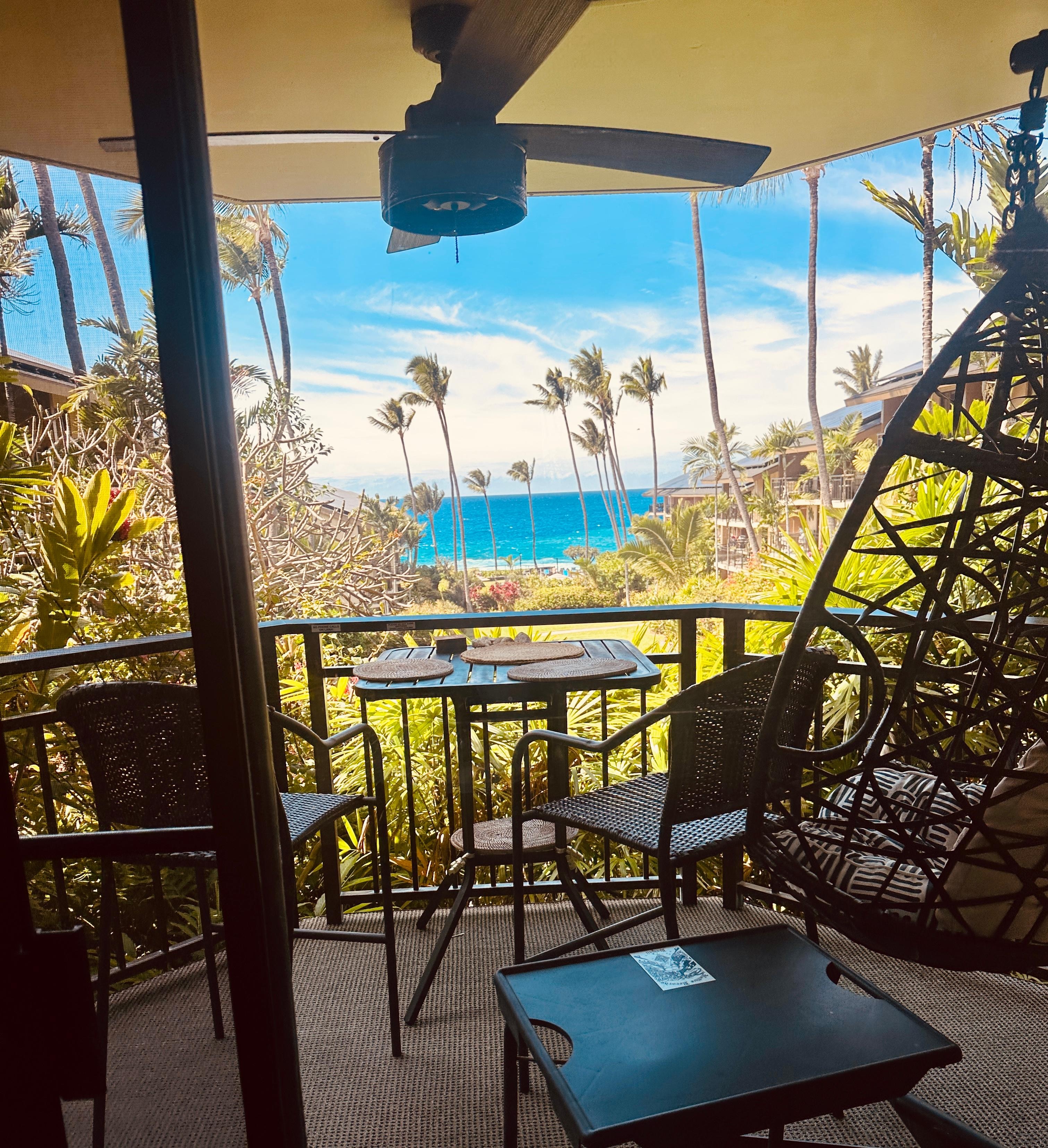 Beautifully landscaped and offers some of the best sunsets and ocean views. Our recently renovated condo/lanai sits directly facing the ocean. You can even sit inside on the couch and see the ocean from it, we make every attempt to NOT exaggerate the pictures. Relax with the pool, hot tub, ping pong or tennis. There is also a small library of shared books. The grounds itself is 5 stars... Think botanical garden.