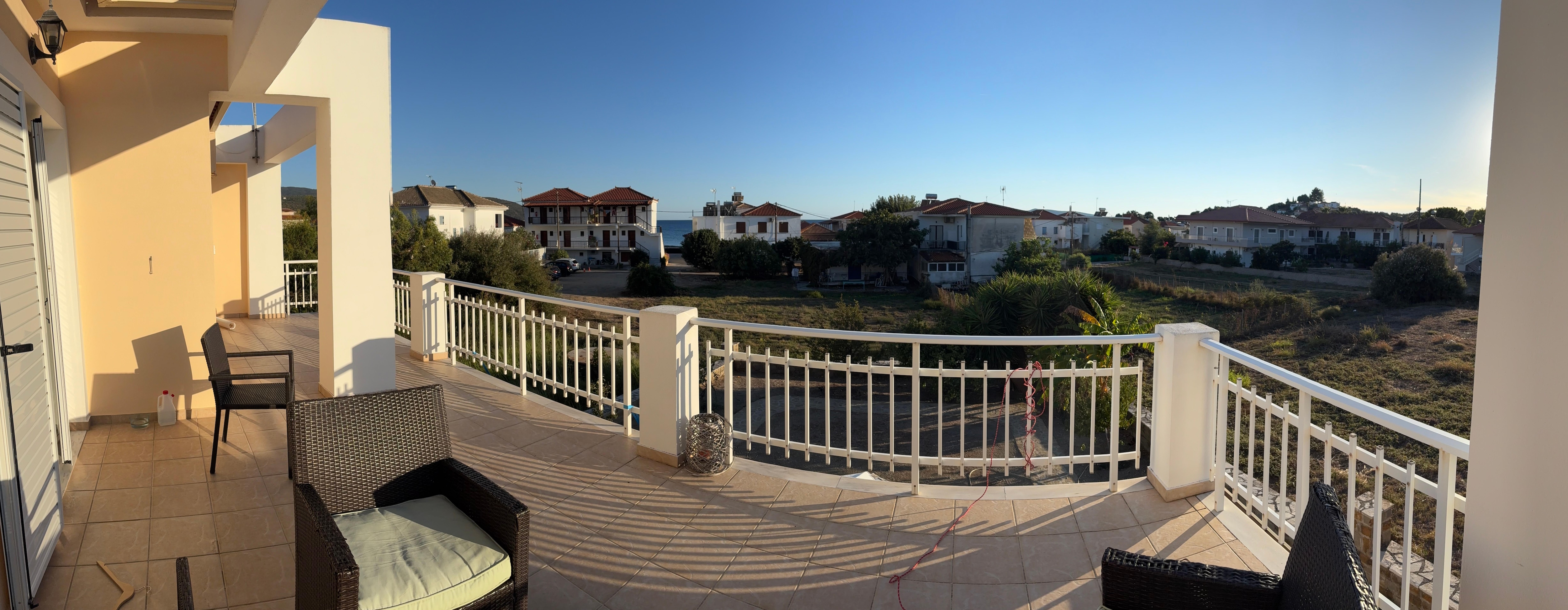 Von der grossen Terrasse aus hat man ein wenig Meerblick. Das Haus ist ideal gelegen. Die Kommunikation mit der Vermieterin war vorbildlich. Wir kommen wieder.
