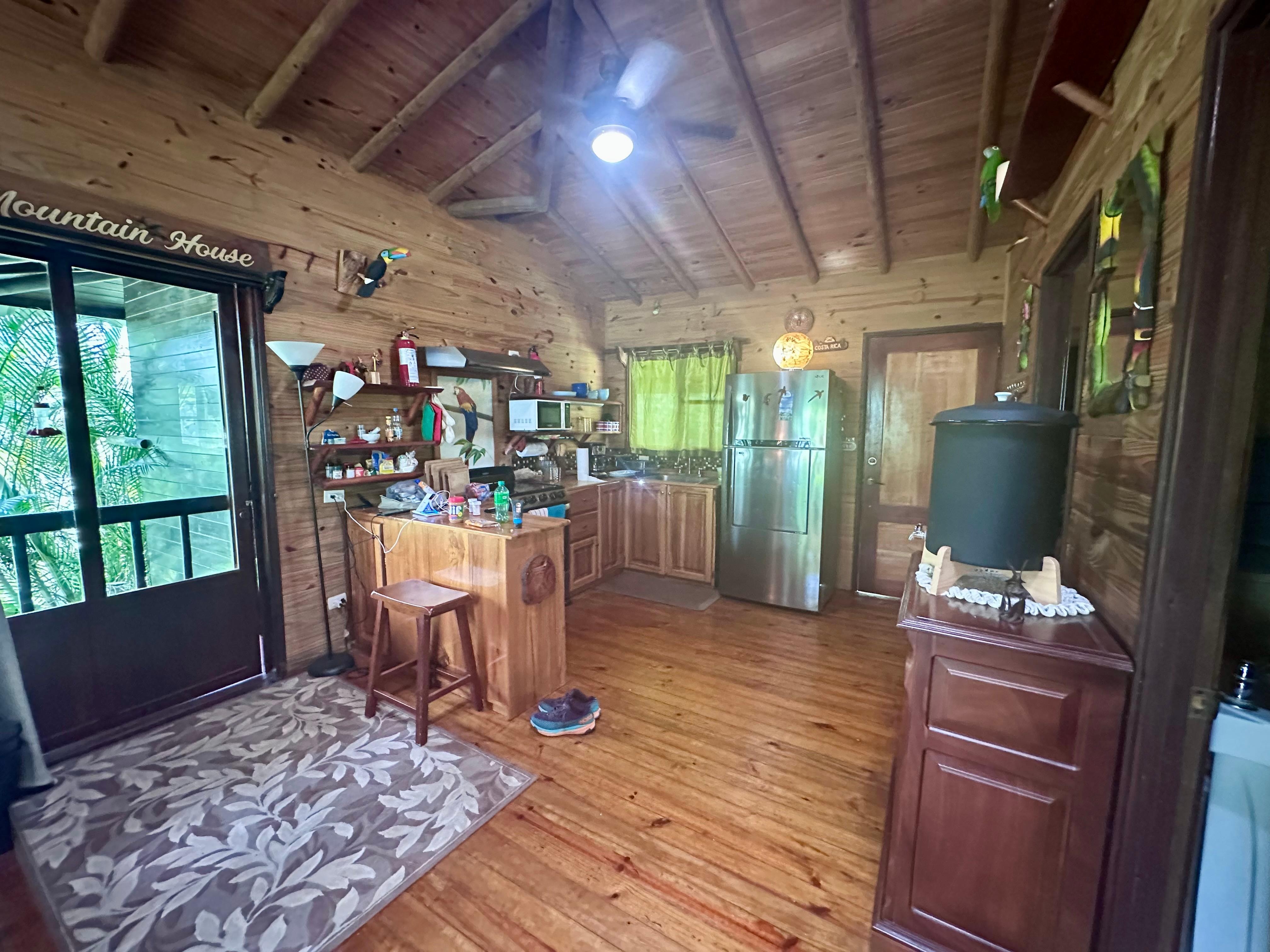 Pros-Amazing view of the volcano, beautiful porch-Middle of paradise, yet so close to everything (sodas, hot springs, waterfalls, splinting, etc)-D’Angelo met us at the nearby grocery story and led us down the side streets to the home, where he gave us a full tour (what service)! -Gardens are well maintained -Two washrooms, each with its own bidet!-Filtered water if we prefer rather than the tap-Hot shower with soap and shampoo, so nice-Plenty of linens, fully stocked kitchen-Toucans, howler monkeys, turkeys and so many birds right in the backyard! Cons(These are very minor and D’Angelo kindly mentioned some of these to us beforehand, which I greatly appreciated; hence 5 stars)-One of the slider’s locks had recently broken; however D’Angelo had a temp floor bolt lock installed, which worked-Tiny nest of small non-stinging bees at the outdoor table. More just annoying while eating and in hindsight we should have just moved the table (our fault as we are in the rainforest)!-Knife set could be replaced, but were usable -Nothing else, this place is awesome. It’s a really cool cabin in paradise. Wish we booked for longer!