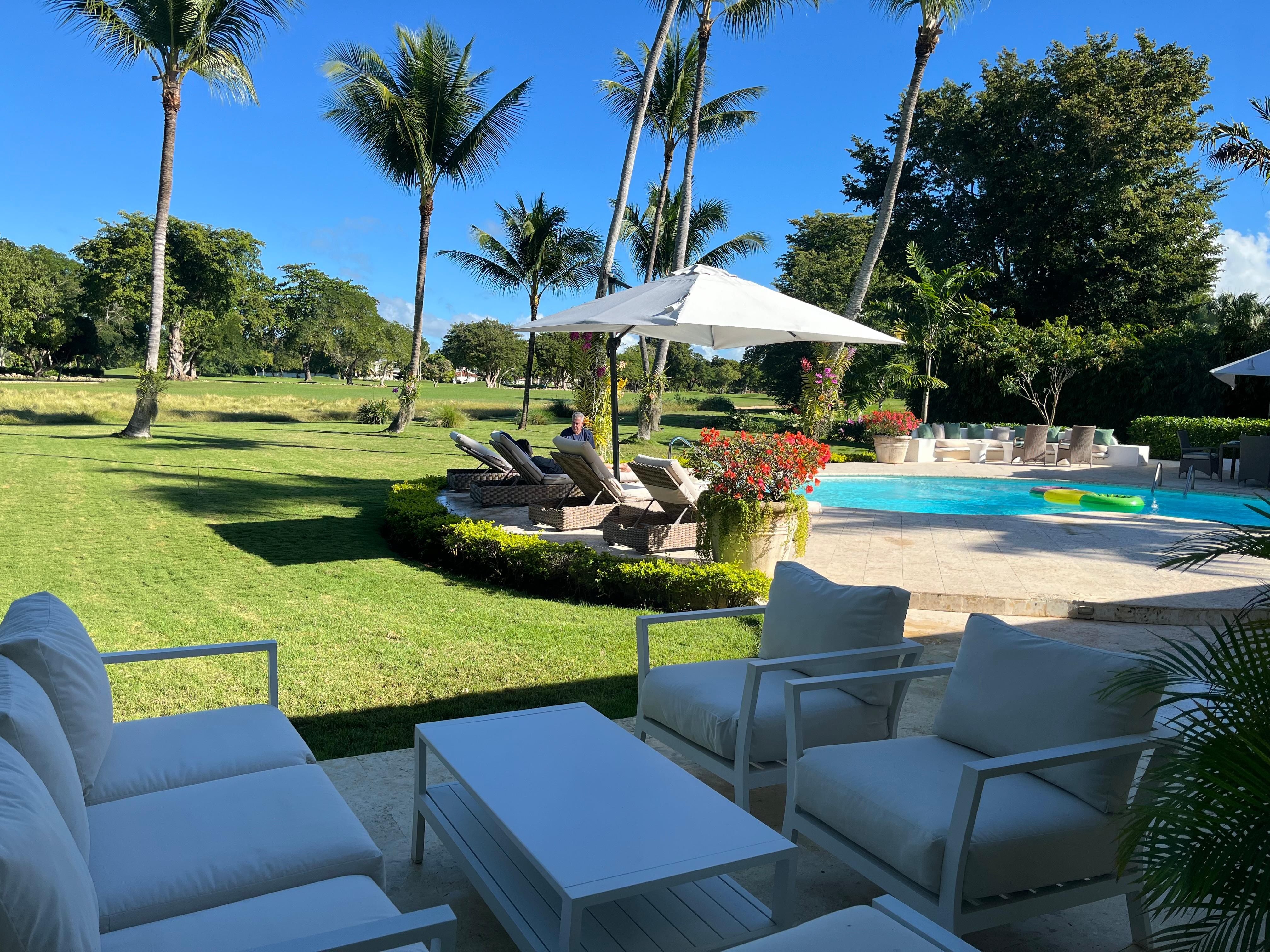 We had such a great vacation in Casa de Campo in general, and at this beautiful villa in particular. It is so beautiful! The owner/host Bob was wonderfully communicative, provided a ton of useful information prior to our arrival, so we had everything figured out and knew what to expect. He arranged transportation from the airport in Punta Cana, which I highly recommend. We had 6 people with luggage and golf clubs so we didn't have to worry that everything would fit in our rental car. A stress free way to start and end our vacation. Bob even had our rental car delivered to and picked up from the villa so we didn't have to waste a second dealing with that. He provided a 6 person golf cart which was awesome. The staff was wonderful - Ruth cooked us delicious breakfast every morning (and lunch one day) and Miguel served us breakfast and drinks and anything we asked for (that we purchased at the grocery store). Raquel the housekeeper cleaned every day and even washed our clothes! The hot tub was hot and delightful. The house is right on the Teeth of the Dog golf course and it was fun to watch the golfers while we relaxed by the pool. We will definitely be back!