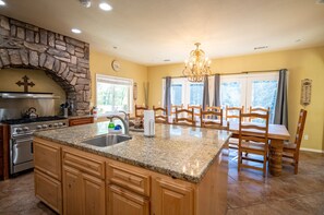 Walk outside your balcony and enjoy breathtaking views every day. At night relax around the large fire pit under the stars. After a long day of fun soak into the jacuzzi hot tub for total relaxation. BBQ on your own private deck or relax in your own recreation room, complete with fooseball table,pool table,T.V. and games for the kids. Our gourmet kitchen and grand dining room table allows seating for up to 14-16. Its a great place to gather for family meals or meetings. Lake water behind the home drops depending on the season and when it does it allows for great hiking. Pool is not heated.