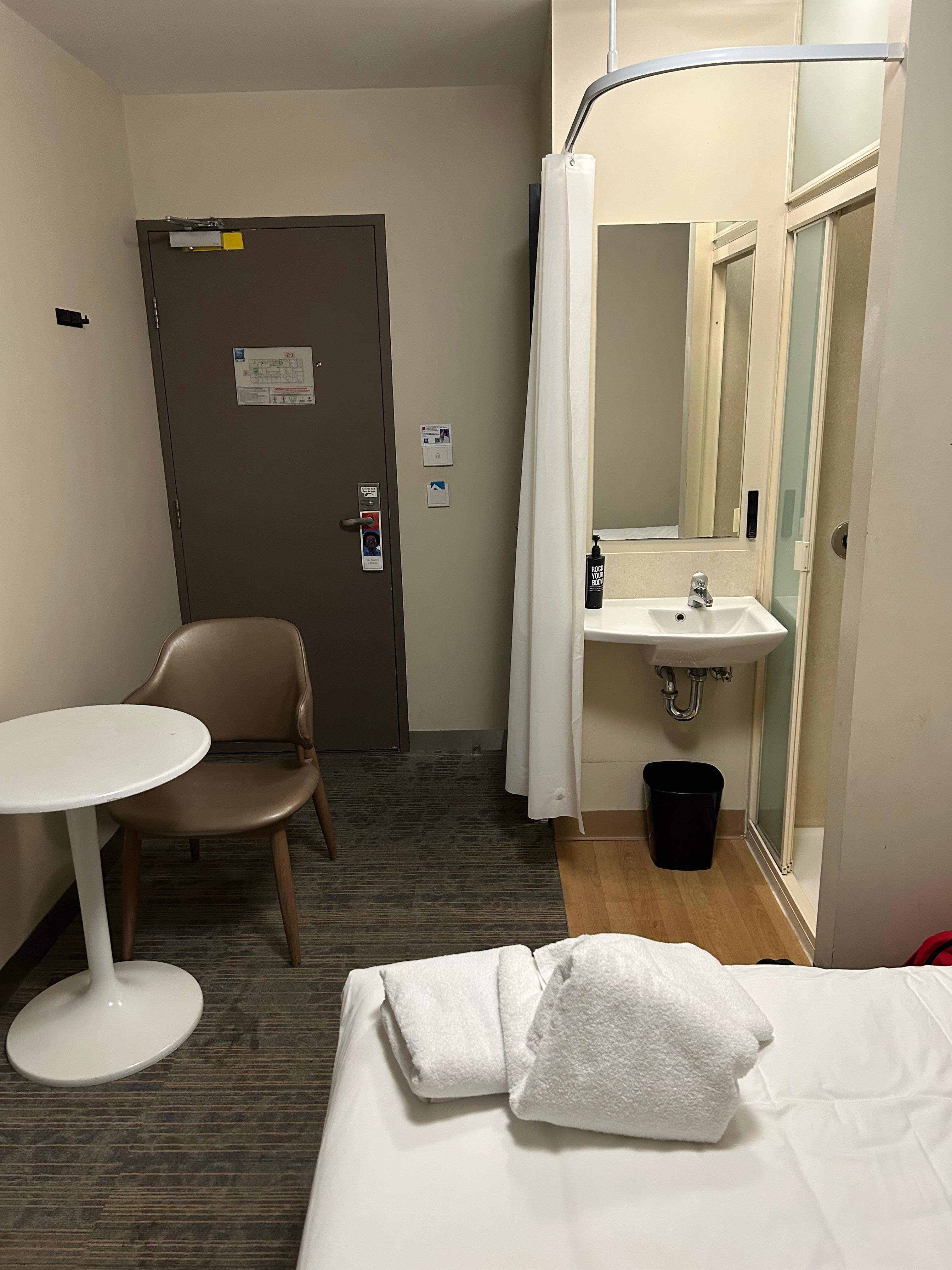 Luckily we were only there to sleep and shower, as the room was small and claustrophobic.