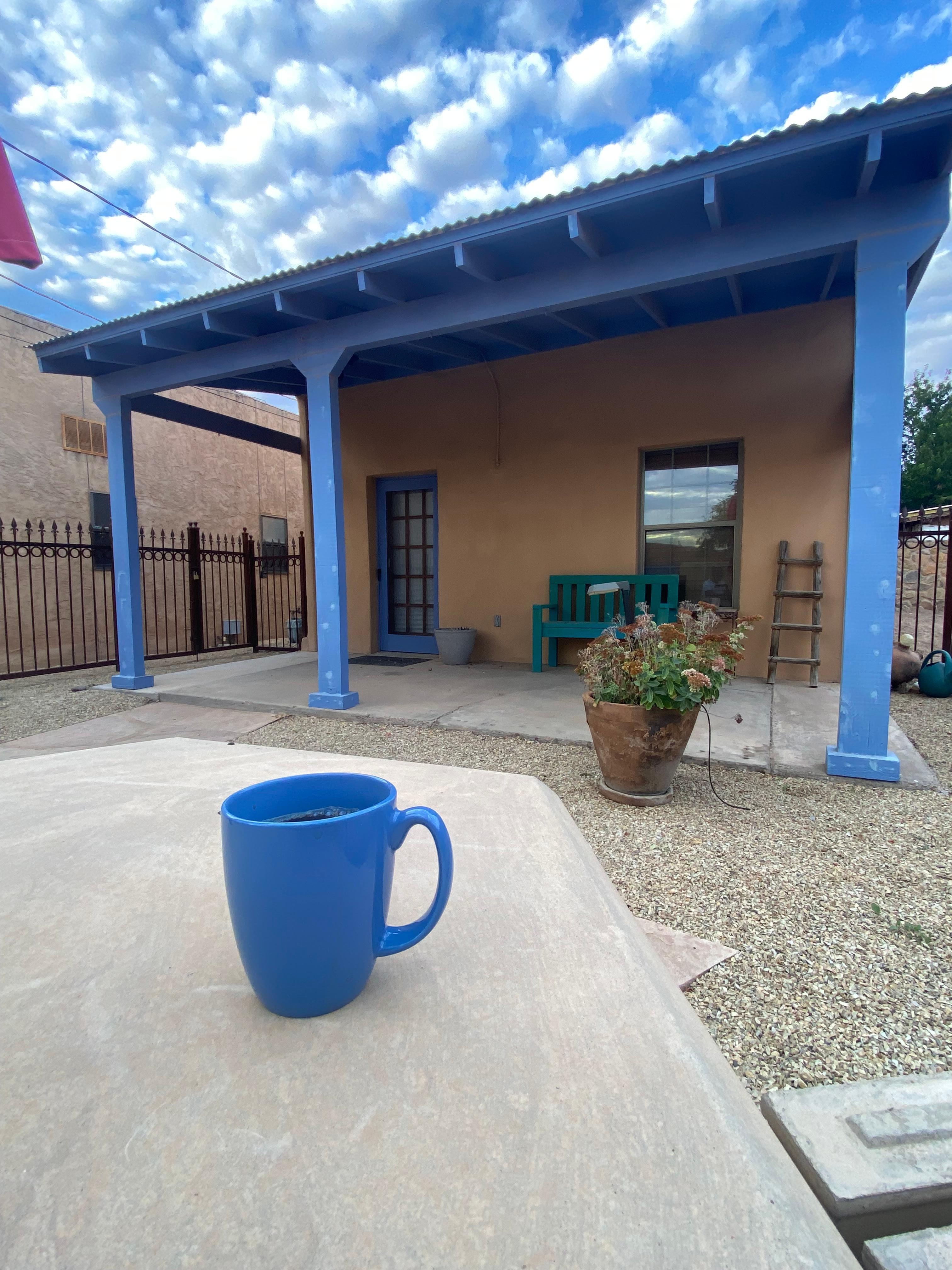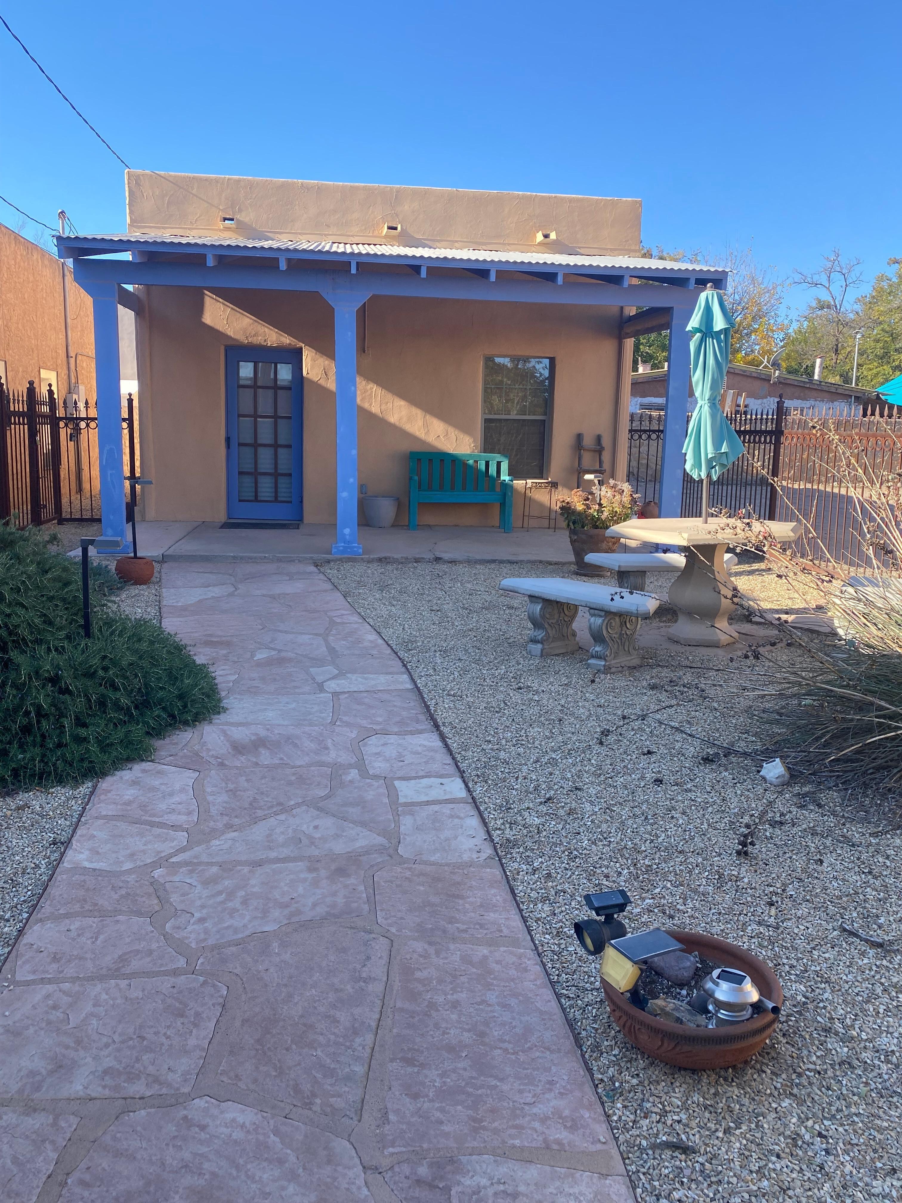 Beautiful, private casita one block from the plaza. Historic charm with modern conveniences. Perfect for quiet retreat. Fenced flagstone patio in back yard fully equipped with gas grill, outdoor fireplace, outdoor dining area and french doors opening from the house. Large front yard fully enclosed. Full front porch creates shade for rocking chair. This house is peaceful but just steps from the fiestas and activities on the historical Mesilla Plaza. Shops and restaurants, an independent film theatre and a bookstore within two blocks. Boutique wine bar with a lovely shaded patio and live music less than a block away. The house is fully equipped with all amenities including everything for the novice chef. Air conditioned for summer comfort.