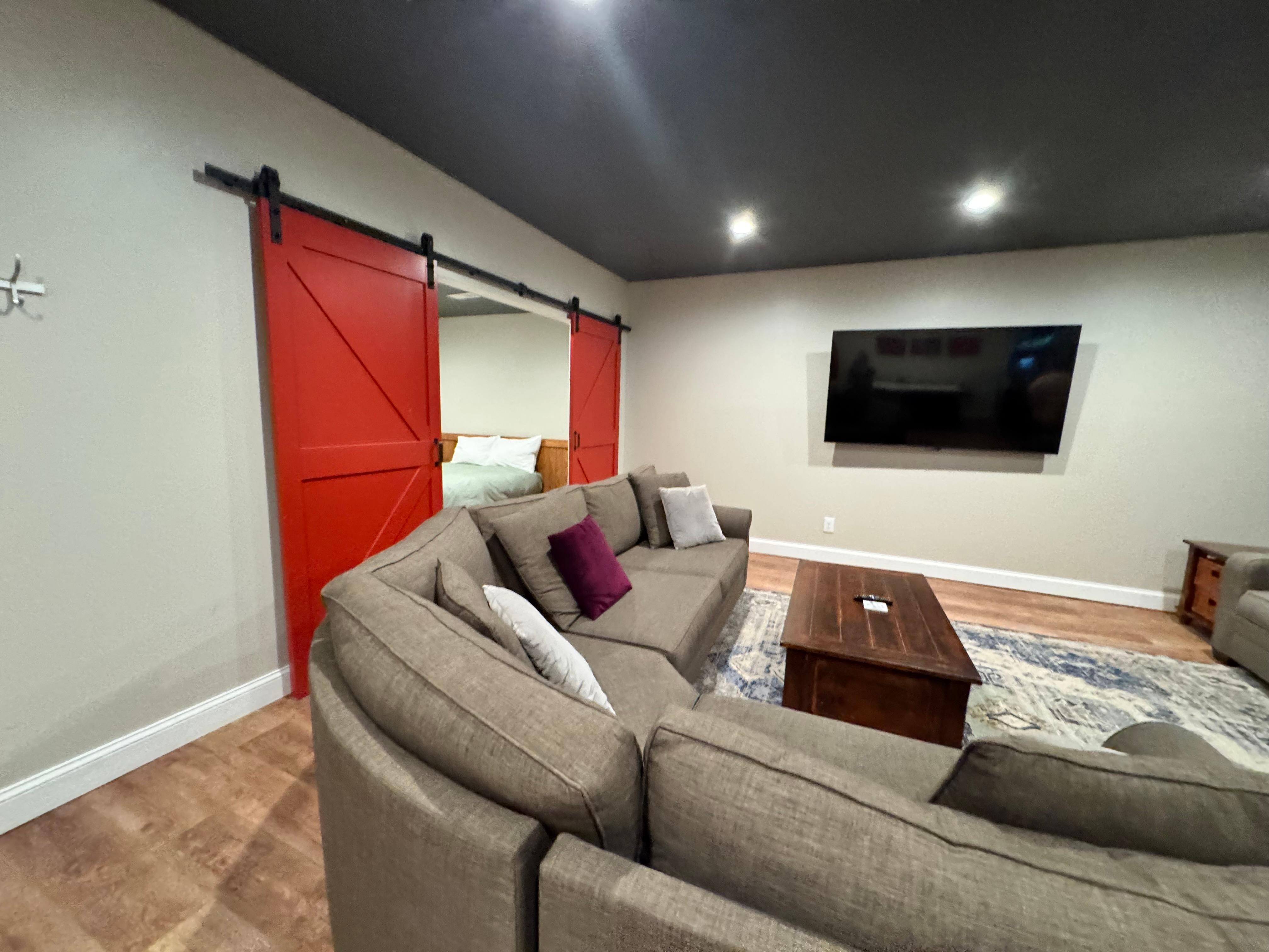 Bring your boat and enjoy Lake Anna right in your own backyard here at Oak Alley! This completely remodeled townhouse boasts an open floor plan, a furnished patio, two balconies, and multiple living spaces to ensure everyone has plenty of room to spread out and relax. The gorgeous, updated kitchen includes stainless steel appliances and a breakfast bar, while meals prepared here can be enjoyed at the dining table with seating for six. This home also includes three separate living areas including a lower-level media room with an air hockey table, a wall-mounted flatscreen TV for streaming your favorite shows and movies, and a sliding door out to the patio and yard. You'll also find a desk and chair and high-speed internet for remote work and schooling. And when it's time to call it a night, take your pick from three cozy bedrooms including a kid-friendly room with twin bunks. Guests will also enjoy access to a covered boat slip, two stand-up paddleboards, a sandy beach, and a tennis/pickleball court all just steps away.