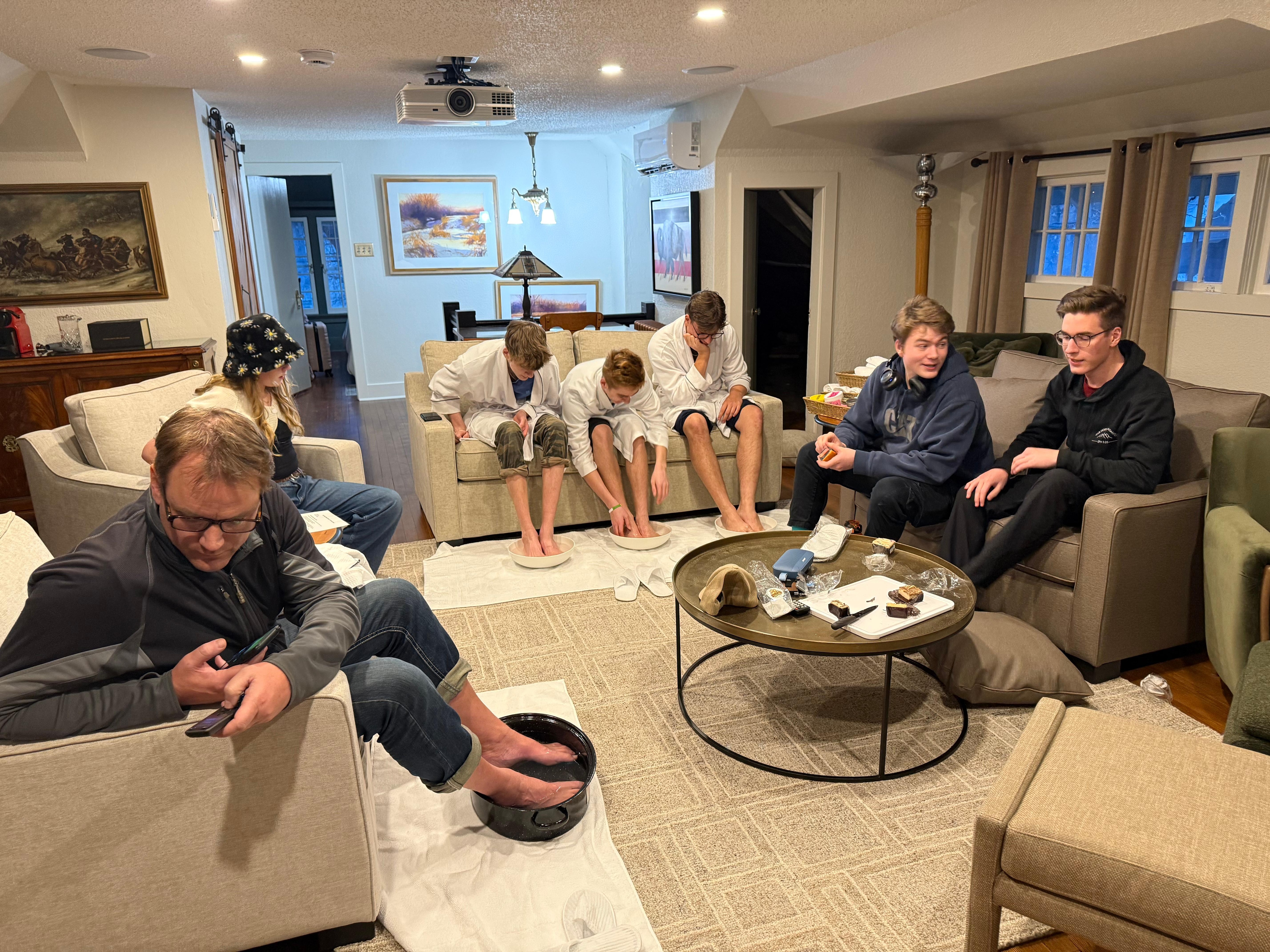 -Smart projector screen in the upstairs family room—ideal for movie nights