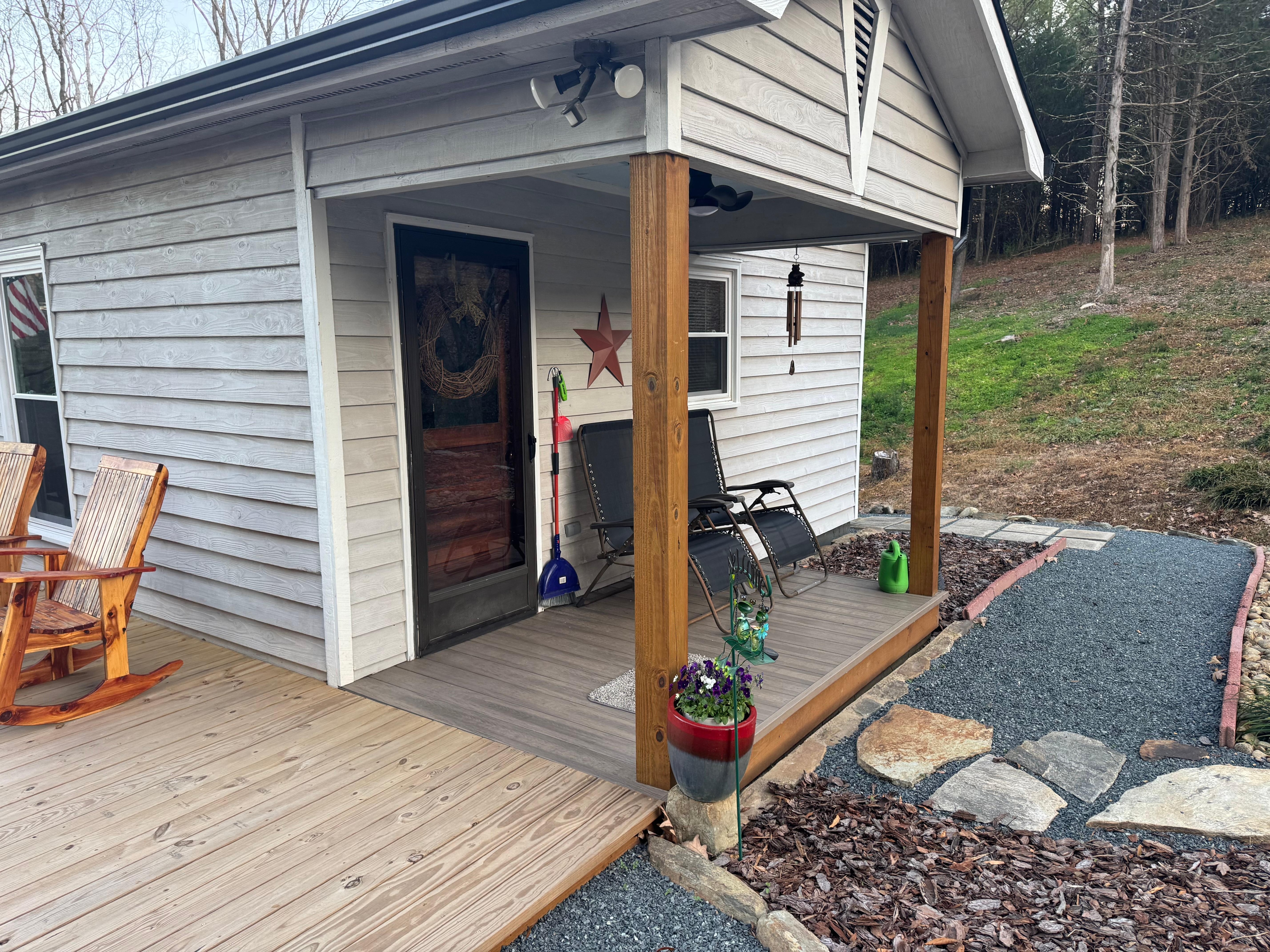 Escape to a cozy cabin in Frog Pond NC for a pleasant retreat. This 3-bedroom cabin offers a variety of sleeping arrangements, including a bunk bed (twin over a full bed), queen bed, and king bed. With amenities like a fully equipped kitchen, washer/dryer combo, iron and ironing board, electric fireplace, outside fire pit, gas grill and WiFi, where guests can relax and unwind. The 2 bathrooms feature showers and hair dryers for added convenience. Enjoy Big Bear Creek for swimming, fishing, or even panning for gold when you stay at our place. Nearby attractions include Stanly County Livestock Arena, Morrow Mountain State Park, Lake Tillery, Reeds Gold Mine, Uwharrie National Forest, and several local wineries. Short distance attractions include Carowinds, PNC Music Pavilion, Charlotte Motor Speedway, Quail Hollow Golf Course and Charlotte Douglas Airport.
