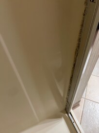 The bathroom was just as bad. Mold was visible in the shower and under the peeling wallpaper. It was unsanitary and unacceptable.