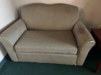 There was a couch in the room that was covered in stains and holes. The pullout bed in the couch was in terrible condition—held together with some kind of wire or rubber string, and completely unusable. I couldn’t sleep on it at all. When we asked for a better sleeping option, they gave us a cot that was even worse. We requested something more supportive, and the “solution” was placing two pieces of wood under the mattress.