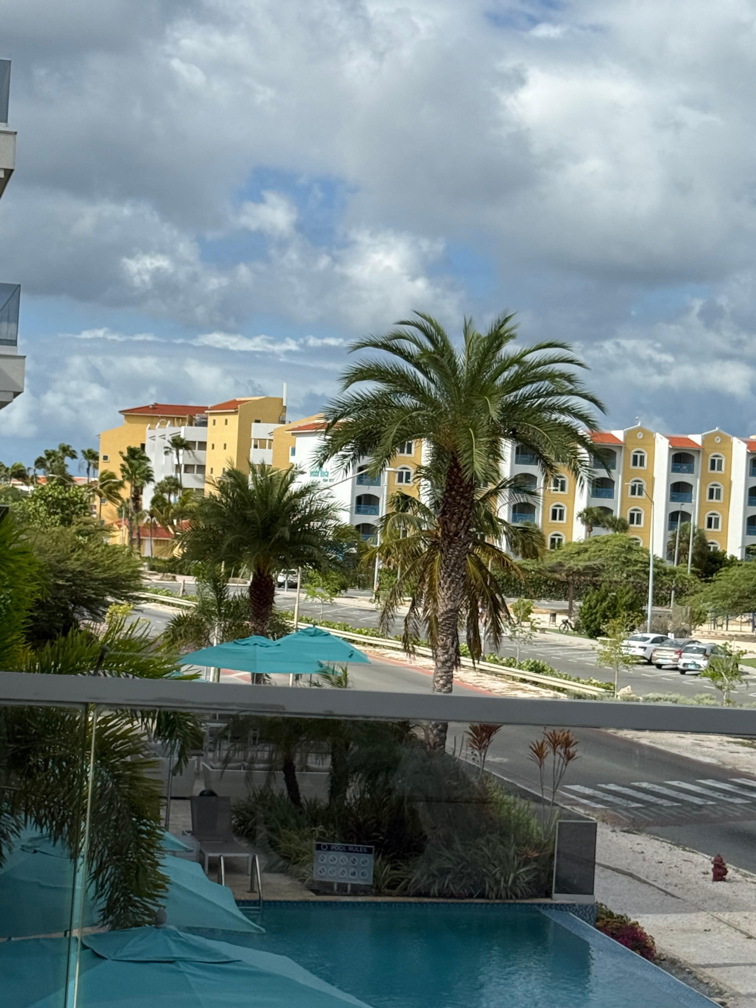 Great location with Eagle beach just across the road. The condo is very nice and very well stocked. Newer building is a plus as well.