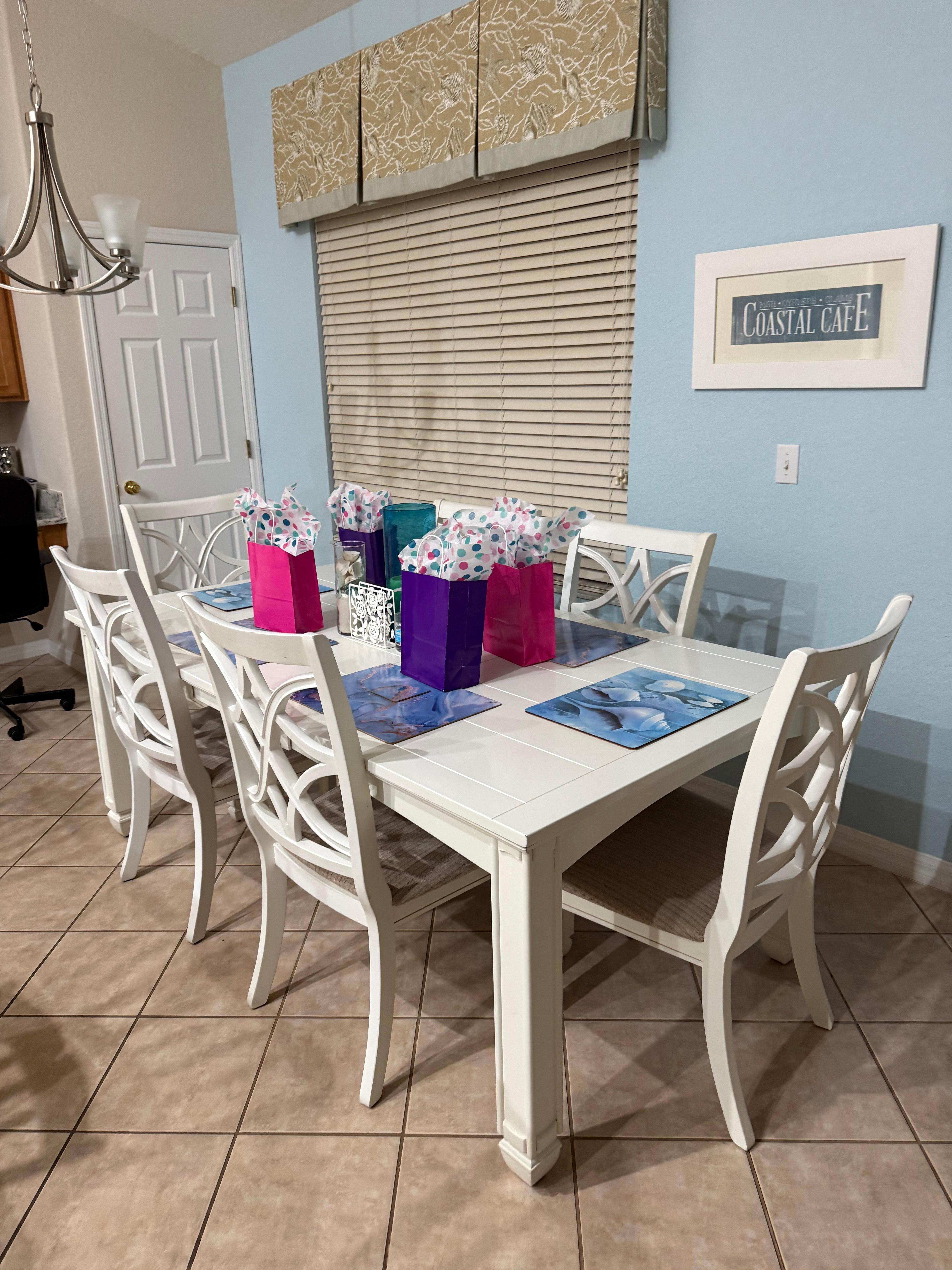 The house was absolutely beautiful. The amenities were amazing. The pool was the kids favorite area, it was nice and warm and the kids swam till almost 11pm till they found the game room with the air hockey table, pool table and games. The master bed was incredibly comfortable and the kids said their beds were great. Quiet neighborhood and only 4.5 miles from baseball fields. Would definitely recommend and stay at this residence again.