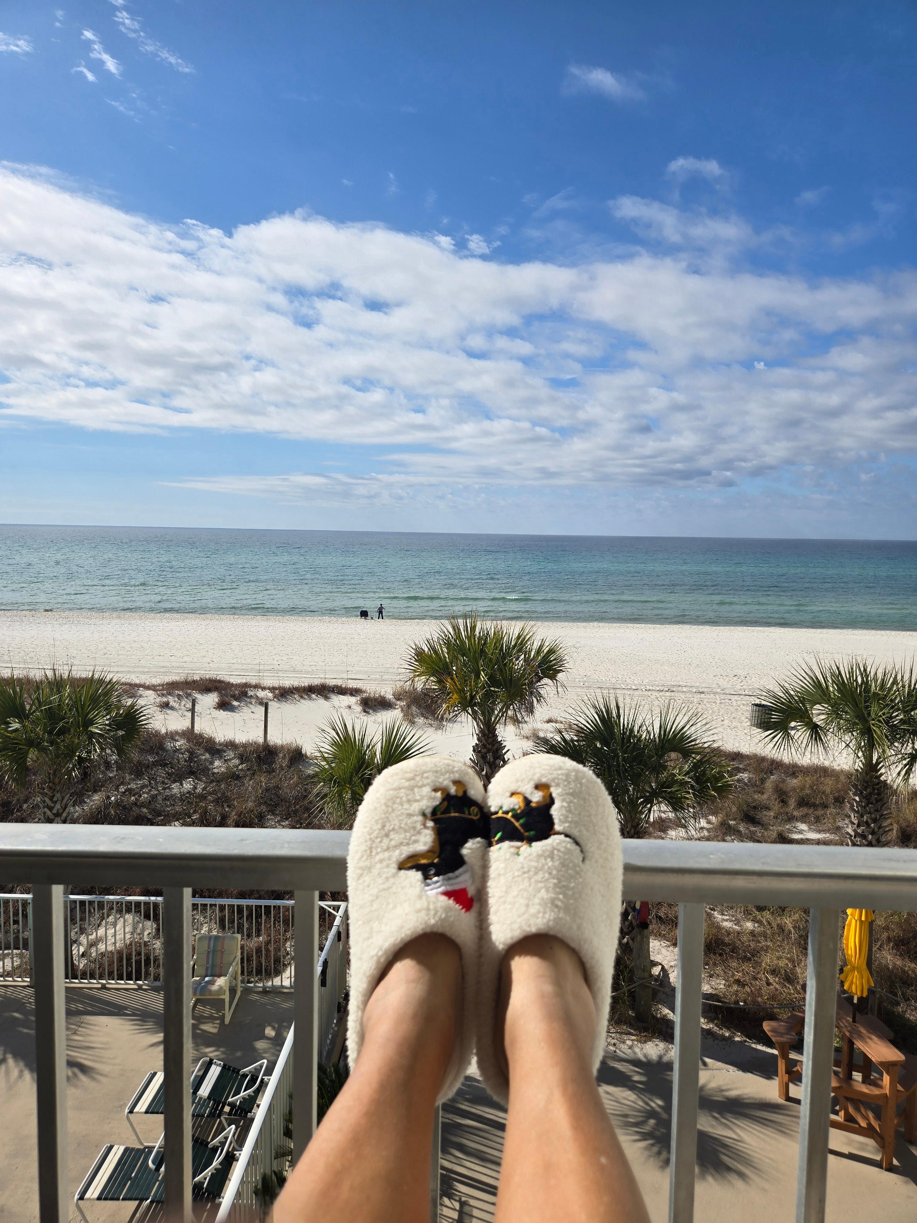 Gorgeous 2nd floor gulf front condo within walking distance to Pier Park and Top Golf! Dog friendly! (Small grass dog area on site on the right side of the building. Approx 70 lbs or less. Check dog fee box on VRBO.) 3/15-10/31 we will provide 2 lounge chairs & an umbrella on the beach for guests! Stunning kitchen features quartz countertops & island. Wonderful bath features ceramic tile walk-in shower. Master bedroom has a king bed & 55 inch Smart HDTV. Memory foam sleeper sofa & fold down murphy bed. Distressed plank tile flooring & eclectic coastal décor throughout. Amazing views from your balcony! Walk to Pier Park, Shuckums, Gulf World, Sharkys, Diegos, & the dog beach at Pier Park entrance. Five minute drive to Frank Brown Park for Gulf Coast Jam. Small complex so no elevators or complicated parking. Hot tub, patio, beach shower, & charcoal grills onsite. We also own 2 adjacent units (VRBO 1156050, 2381370) & a first floor unit (3262642).