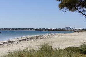 The beach in front offers good swimming, sunbathing, beach fishing, kite flying, body surfing or relaxing walks along the white sands. Kangaroos can occasionally be seen in Halls Head having escaped from the Mandurah Country Club where they shrive. 3 minutes drive from Mandurah Bridge and Mandurah Village.