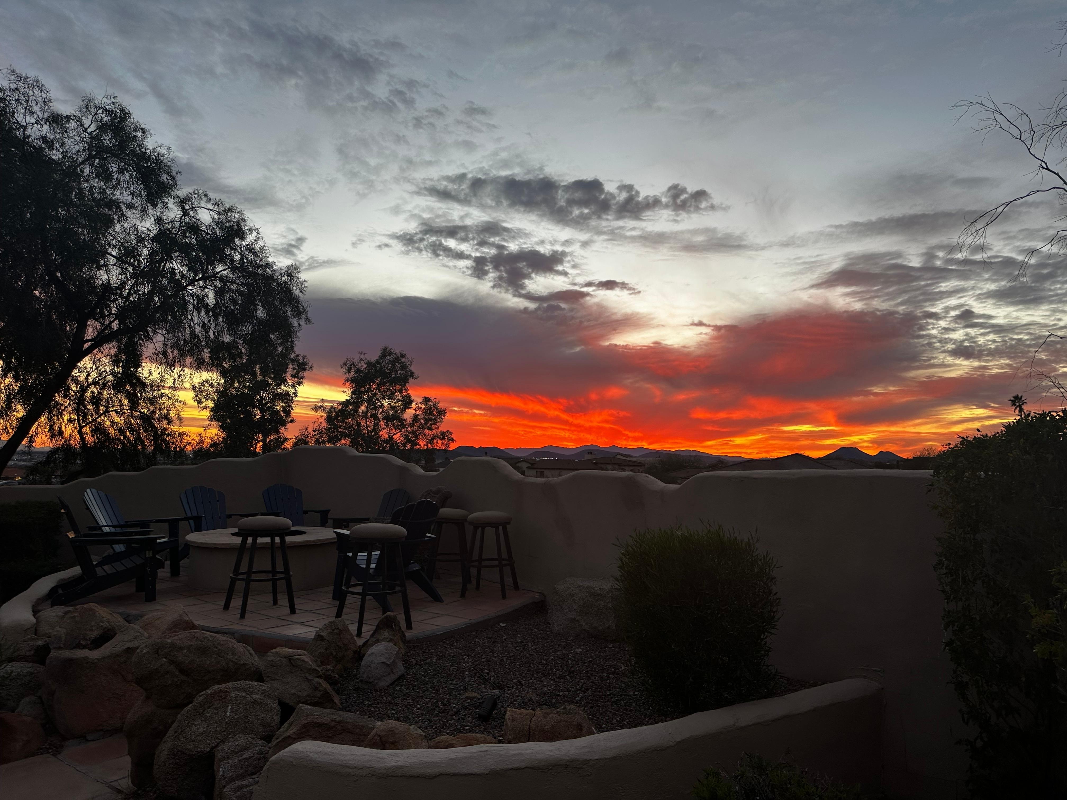 7,000 sq. ft. custom, resort-style home adjacent to the Phoenix Sonoran Desert Preserve and Cave Buttes Recreation Area. This 2.5 acre estate has both colorful mountain and twinkling city views. The always-changing colors of the sunset in the backyard are breathtaking! One of the big secrets you will enjoy at this home located in Happy Valley, is the weekly hot air balloon “shows” directly over the house. It is a memorable, quiet, slow moving, colorful, up-close experience you won't forget.