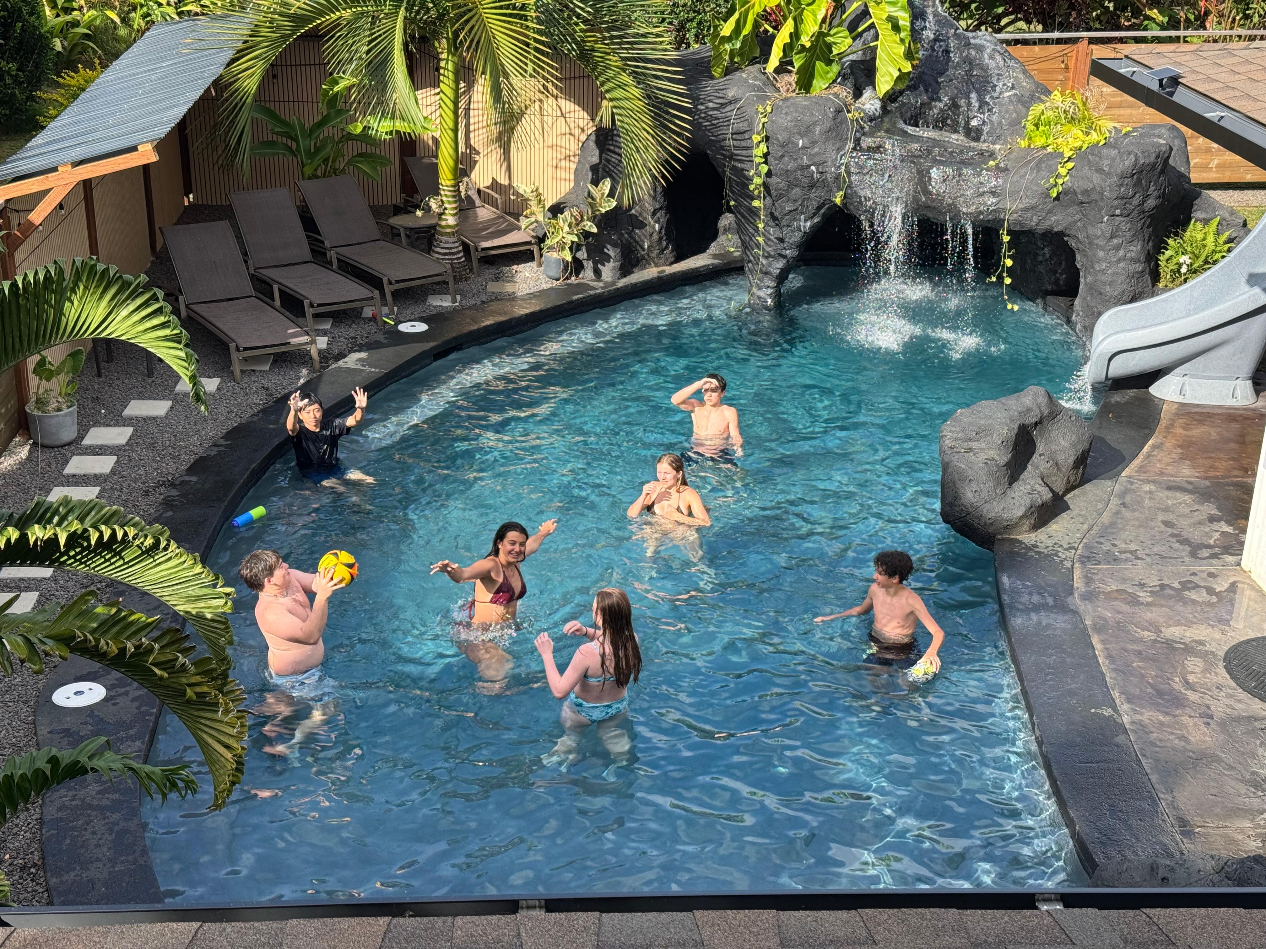 This brand new home will be your own private Hawaiian Oasis! Our spacious 3,000 sq.ft. home boasts 4 bedrooms, 4.5 bathrooms and the capacity to sleep up to 17 comfortably! Complete with your own grotto-inspired pool, jacuzzi, water slide & home theater, The Lagoon will be an opportunity for wonderful vacation memories!