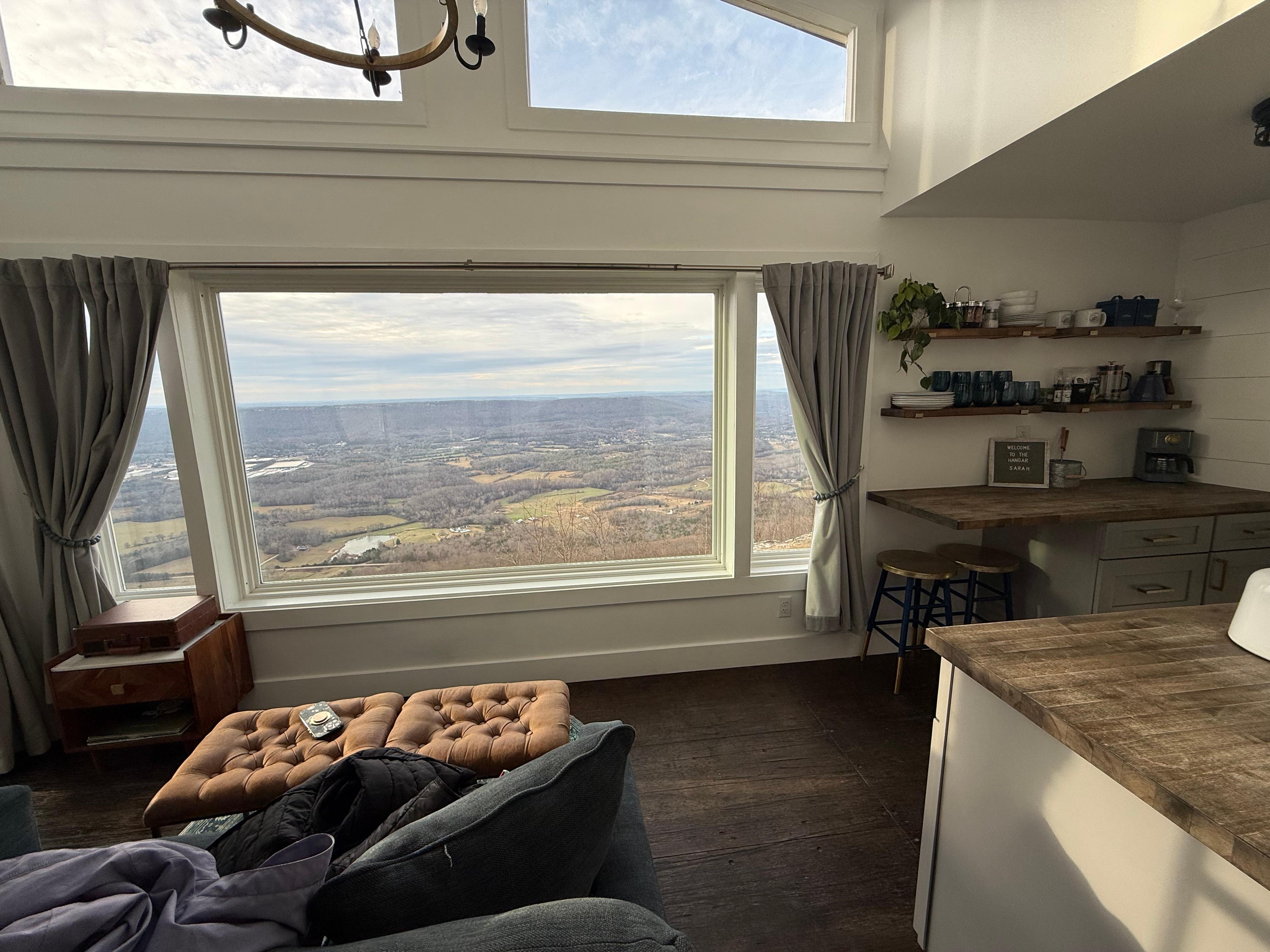 Welcome to The Hangar, a unique repurposed cargo container getaway atop Lookout Mountain, Georgia. The Hangar is named after its unique roofline that was built to imitate the hang gliders that occasionally pass by from the nearby flight park.