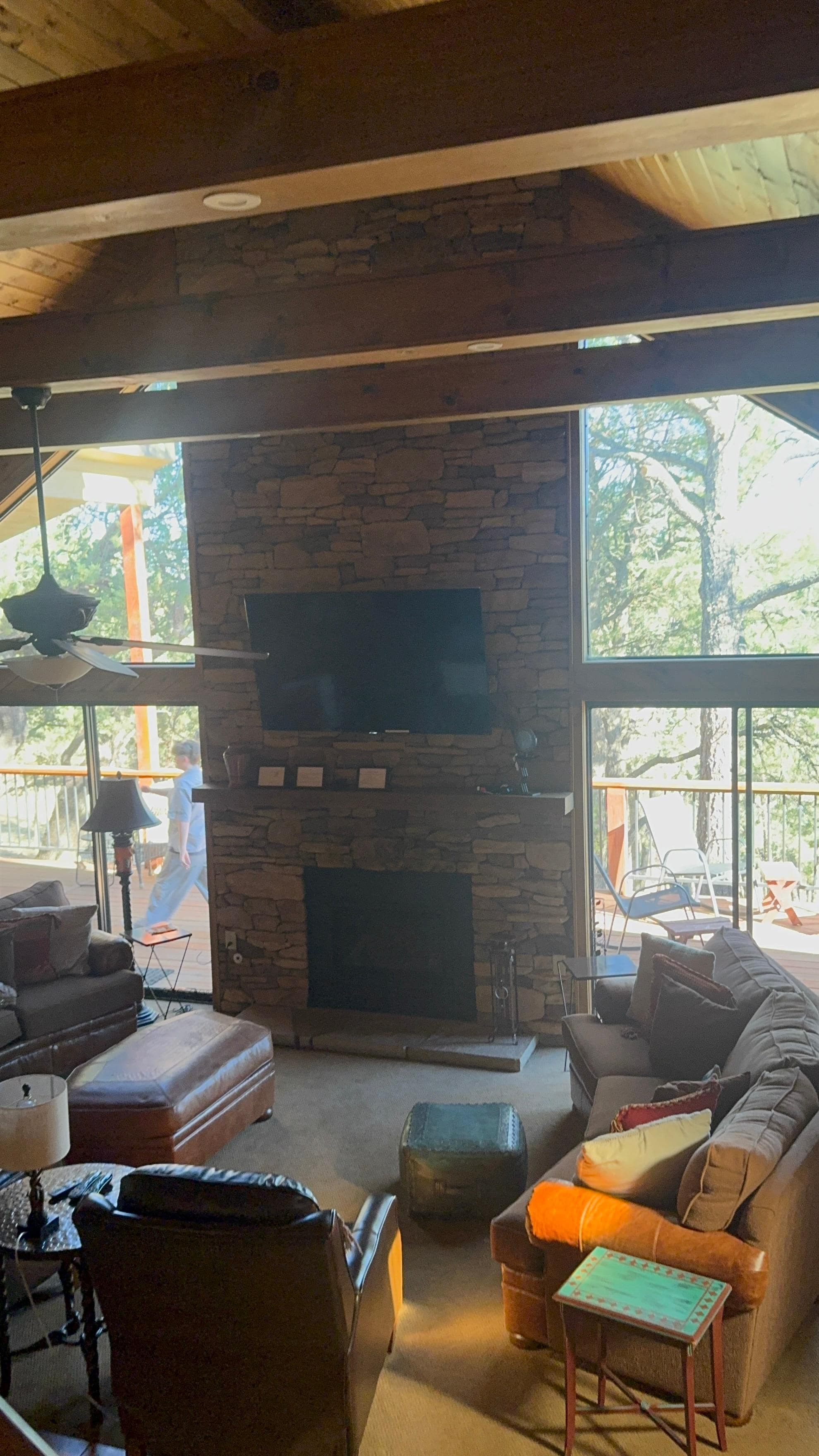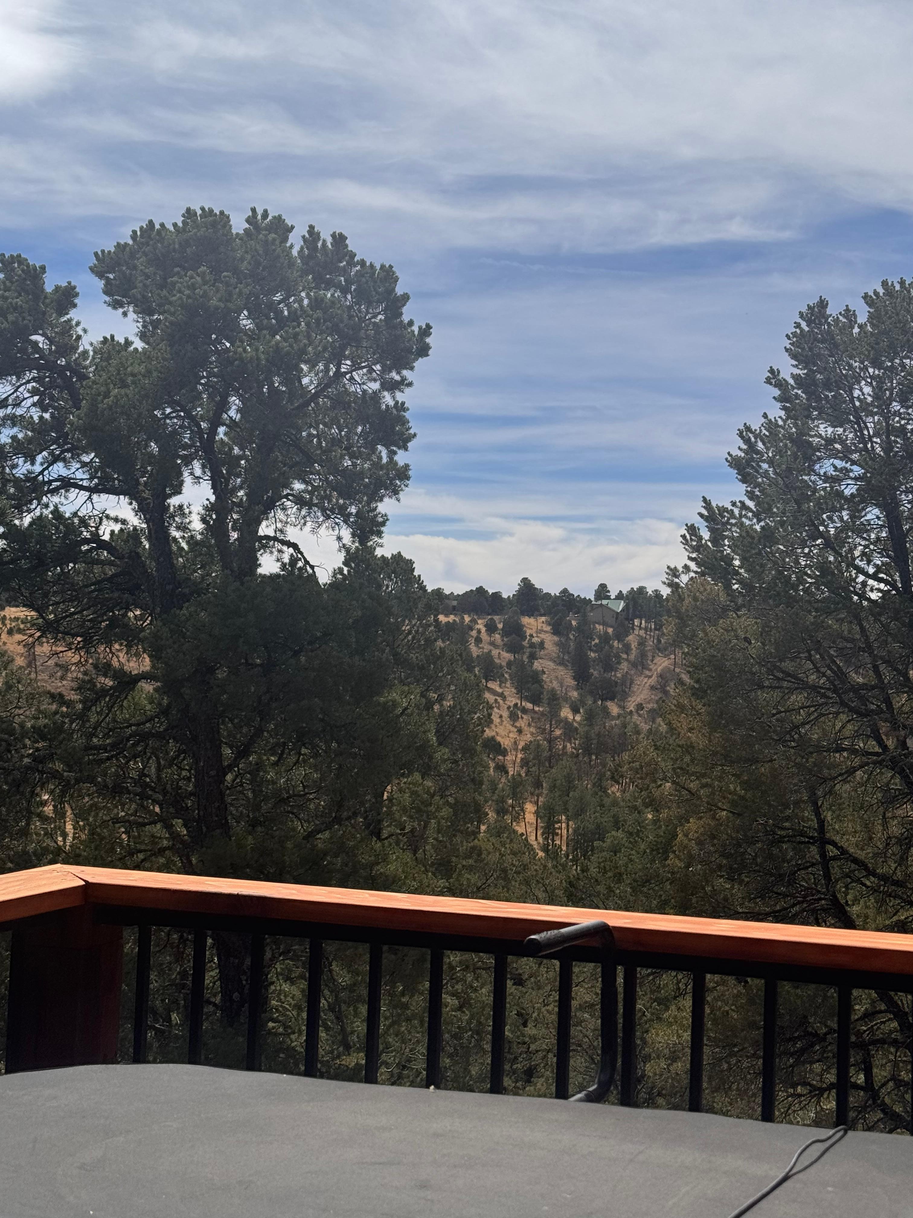 The back wall of windows in the living room looks out to a great view. Stepping out on the deck you are in the tops of the trees. There is a hot tub/ spa for relaxing on the deck. Each bedroom has a King bed and en suite bathroom. The basement bedroom has a bunkbed as well as King bed and bathroom. Also, there are 2 portable cribs (bring your own sheet for portable cribs) and a high chair.