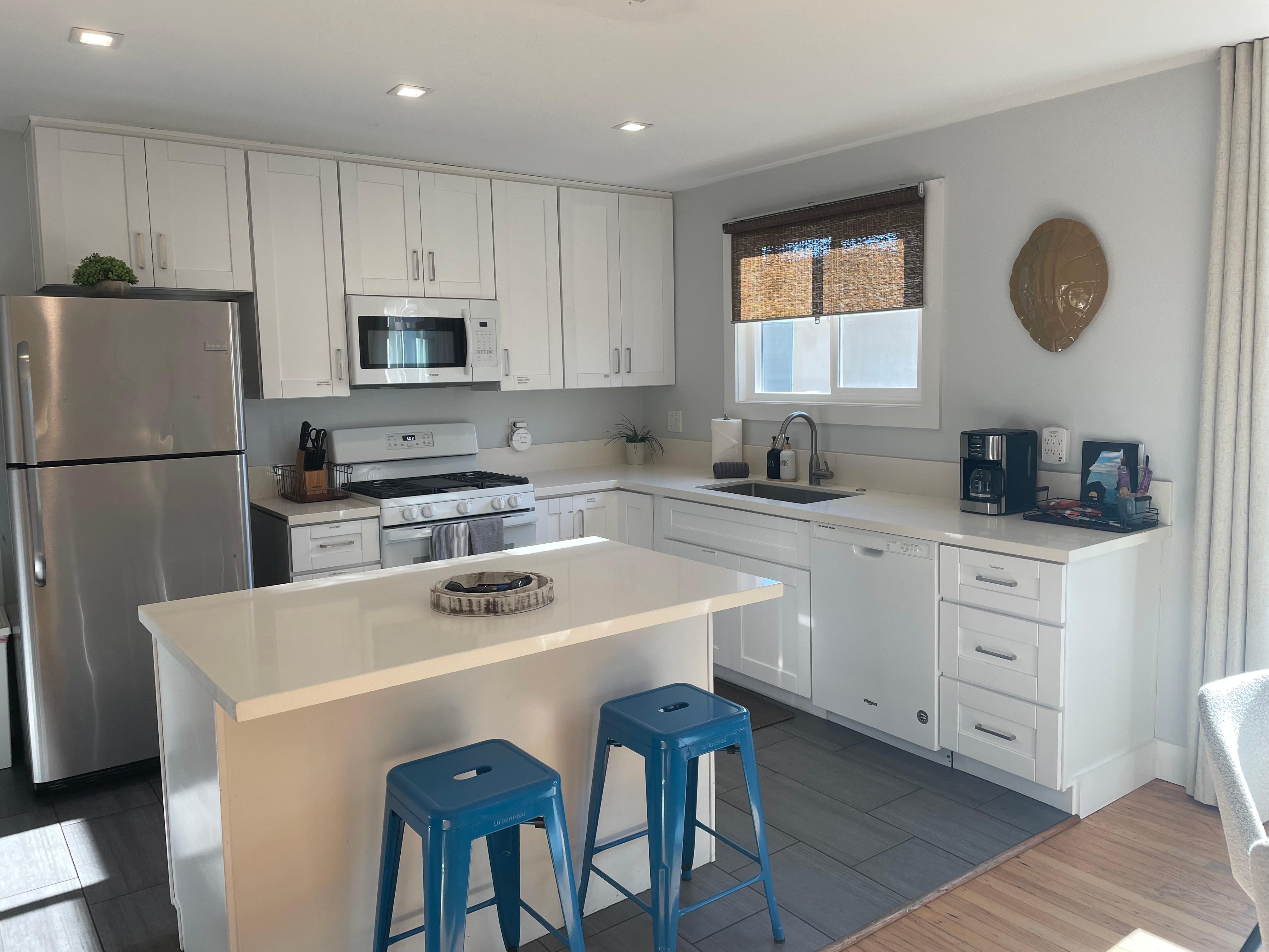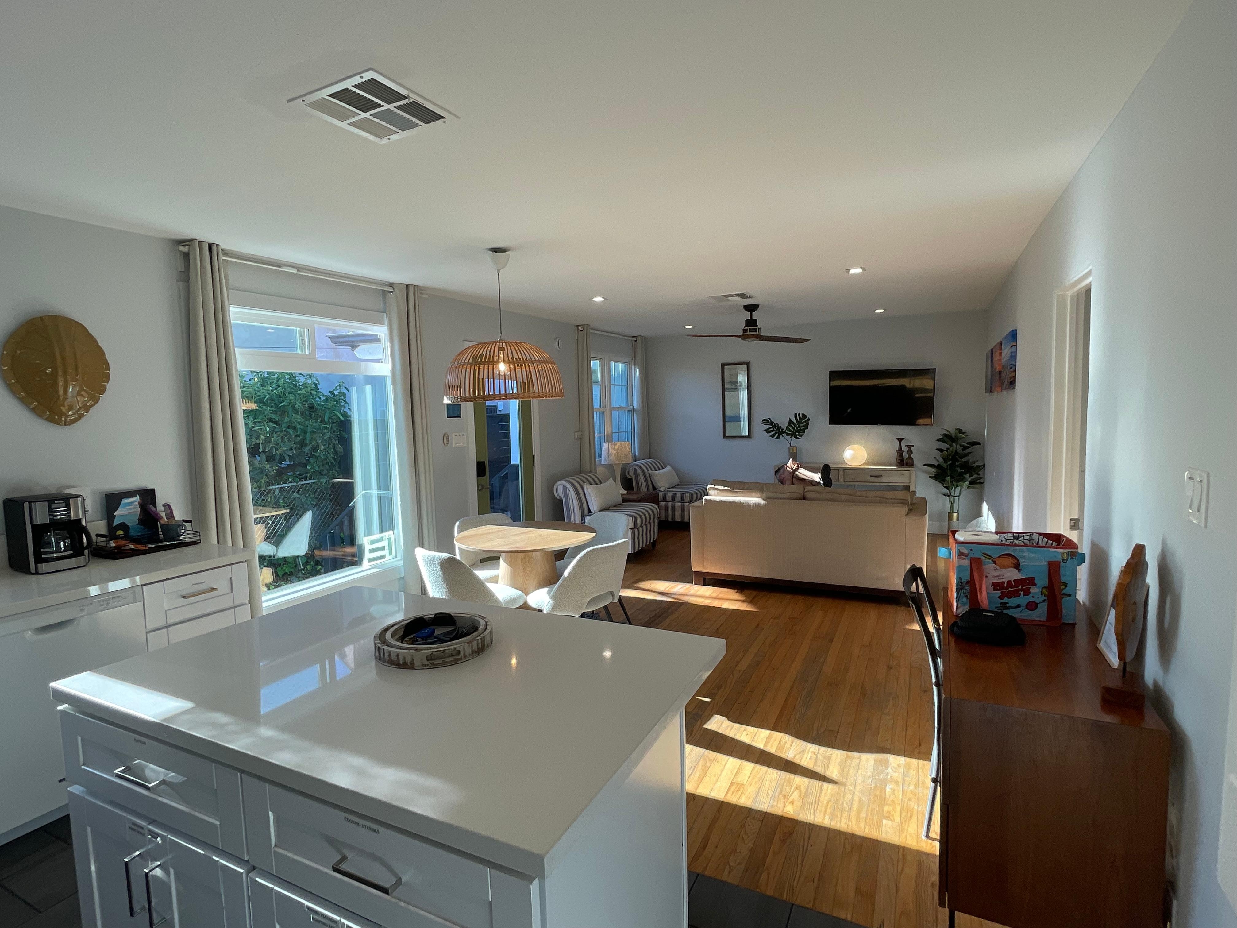 This property is newly renovated...we may have been some of the first ones to stay there based on how new the kitchen utensils and other things looked (December, 2024). It is very well done and nice and comfortable for our group of four. The kitchen is large and has a nice big island which is great for preparing food and gathering around. It's a very short walk to the beach and amazing sunset views. Also walkable to Bird Rock and PB beach/pier. Many great restaurants within a 10 minute walk. The back area with the BBQ was very well done and a nice place to relax. Loved it, we will be back!