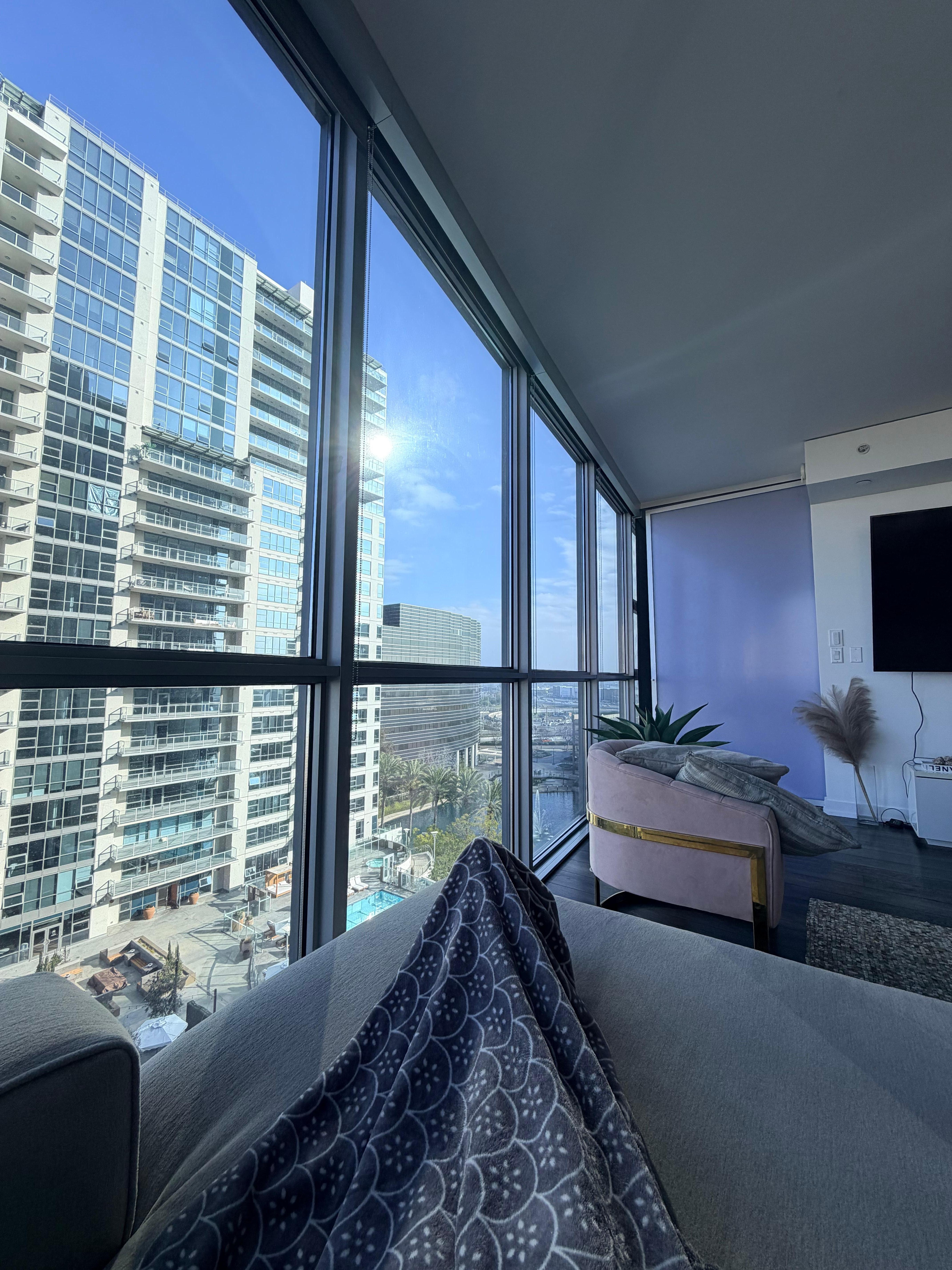 Penthouse luxury highrise with sunset and skyline views. Perfect for couples, families, remote workers and group trips to Southern California. Located in the heart of Orange County, just minutes from John Wayne airport, luxury shopping and restaurants. Our light filled & fully furnished 2 bedroom/2 bathroom is your home away from home. The Chef’s Kitchen is complete with Stainless Steel Viking Appliance, pots, pans & bakeware. The building amenities includes a pool, spa, clubhouse, bbq and gym.
