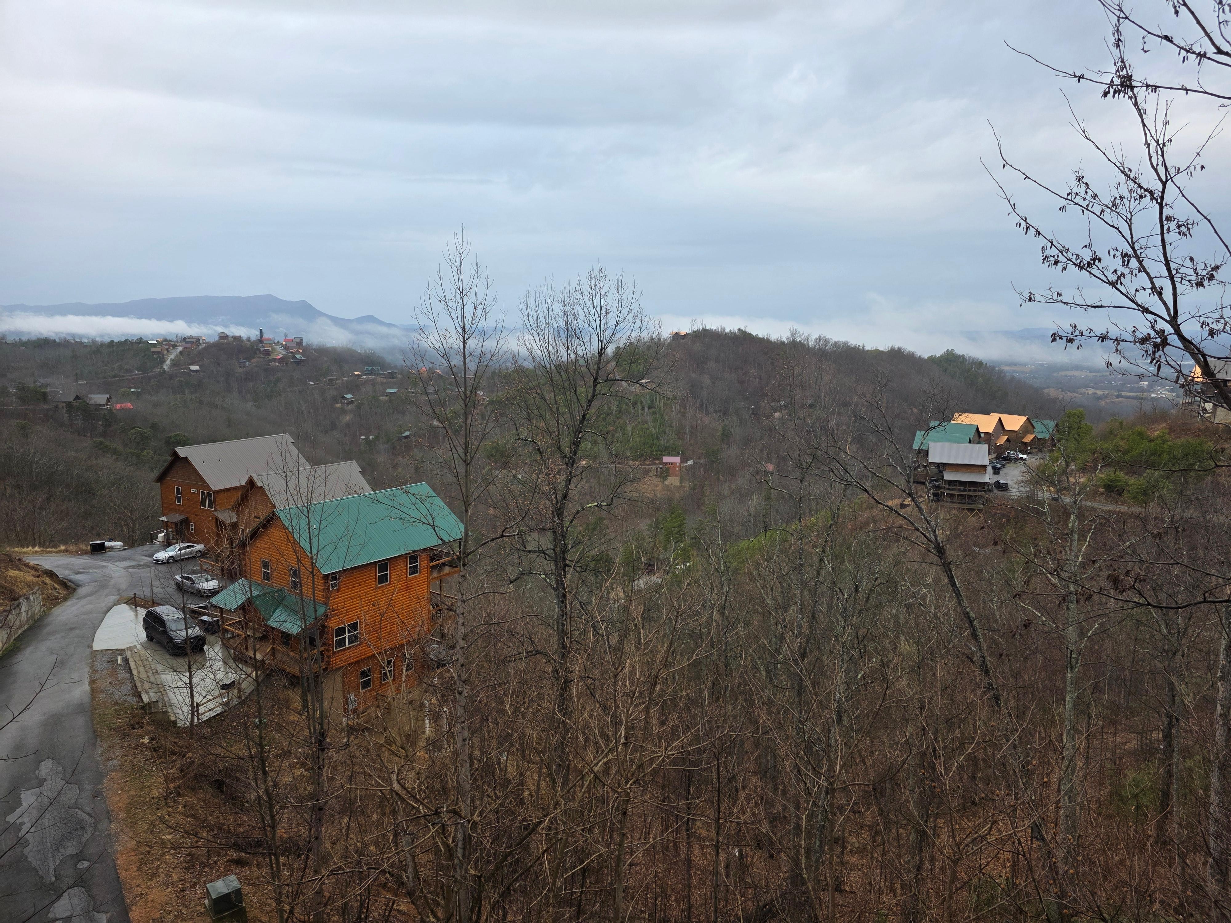 The drive to the cabin is definitely scary at first if you’ve never driven mountain roads before. Cabin is literally on the side of a mountain. The deck is about 30 feet off the ground (we somehow had a raccoon visit us while we were sitting in the hot tub one night! He was totally a gentleman.) Cabin was the perfect size for our family of four. Our kids loved the hot tub and the games provided. Everything is about a 15 minute drive, this is because it takes roughly 10 minutes to drive down the mountain side. The sunsets were the most beautiful we’ve seen! Cabin could use some updating, some of the windows are fogged but overall, it was a really fun getaway for our family! Pool was not open during our stay in March.