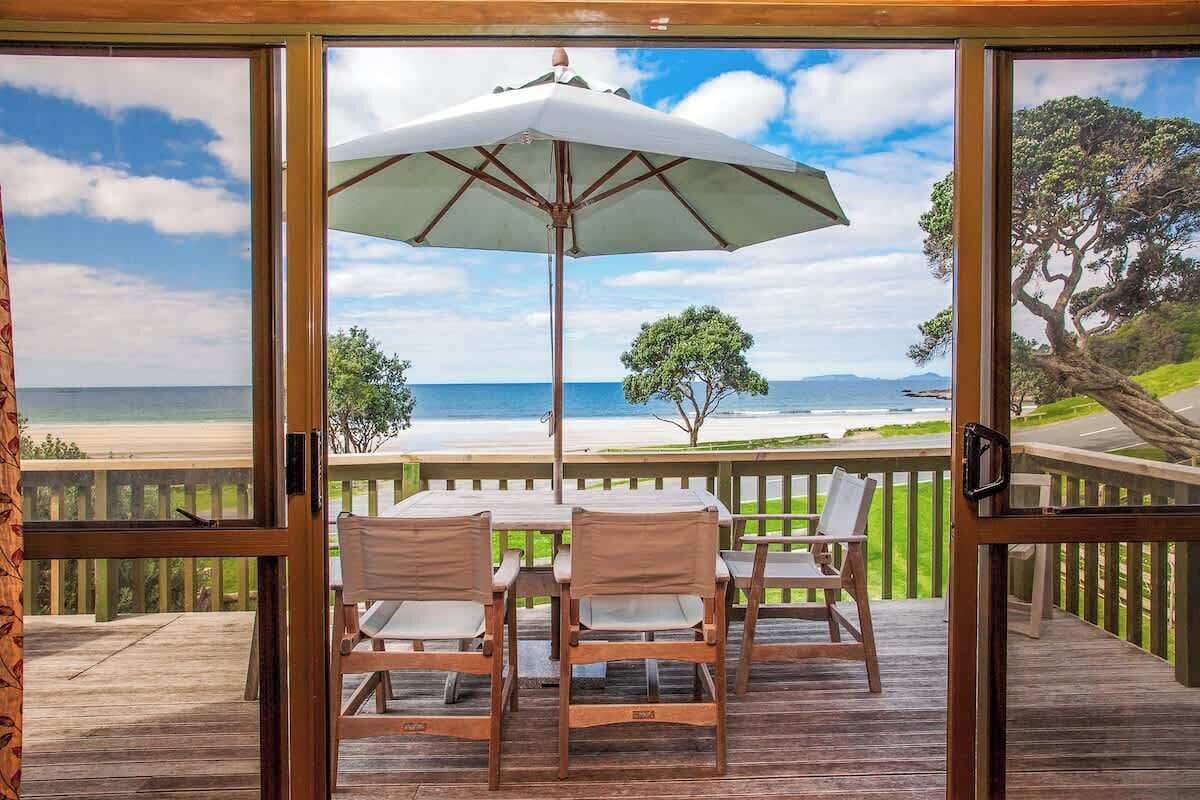 But with a 90 second walk from the front deck to the golden sands of Wellingtons / Whangaumu Bay, you wont have to battle for a park!