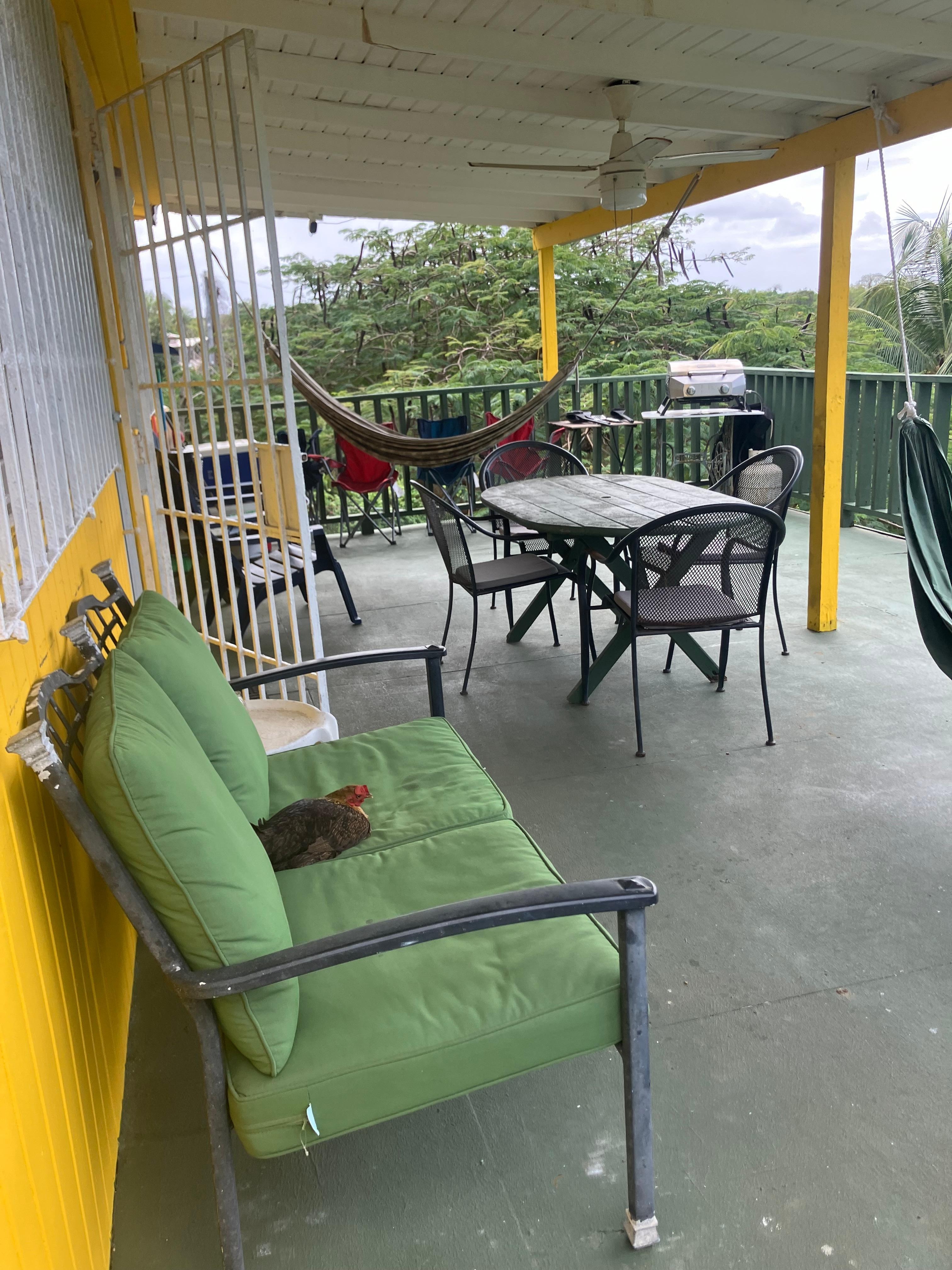 We loved the view from the porch, the hammocks, the well appointed kitchen, numerous beach towels and chairs, and all the wild animals about the place. There lots of iguanas and chickens in the yard. The whole island is teaming with life. If you need where you stay to feel really sterile then this isn’t the place for you - it opens up to the outside. We saw no more bugs than in our own home despite being so open to fresh air. The AC gets nice and cool in the bedrooms. We could easily drive to anywhere on the island from this central location.