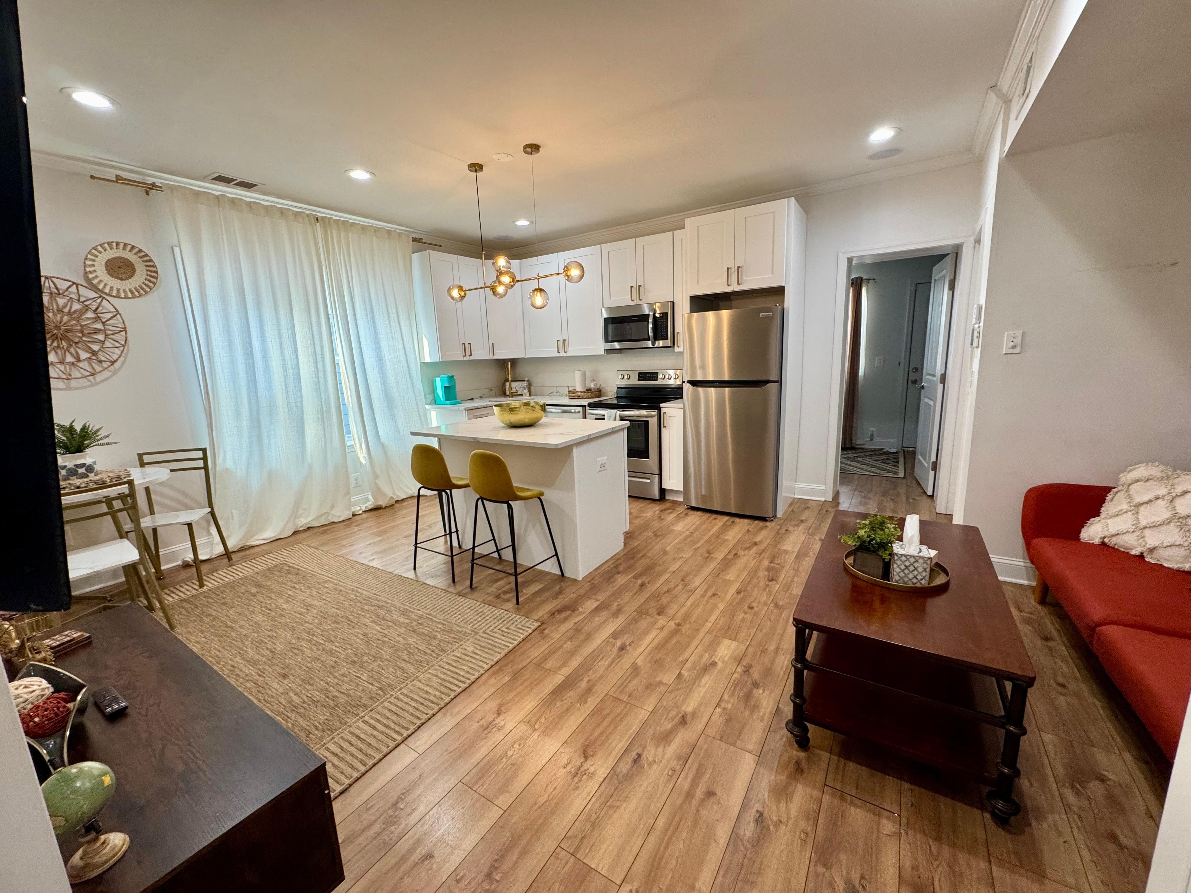 Get ready to relax in this 2-bedroom apartment in Washington filled with chic decor and modern aesthetics. This charming property offers a tranquil escape for guests, with its cozy bedrooms featuring 2 bedrooms. The living room provides additional space with a tremendous sofa bed, perfect for unwinding after a day of exploring the city. You'll find everything you need for a comfortable stay, from the iron and washing machine to the hair dryer and WiFi. Kickback, relax, and enjoy everything Washington and our apartment has to offer.