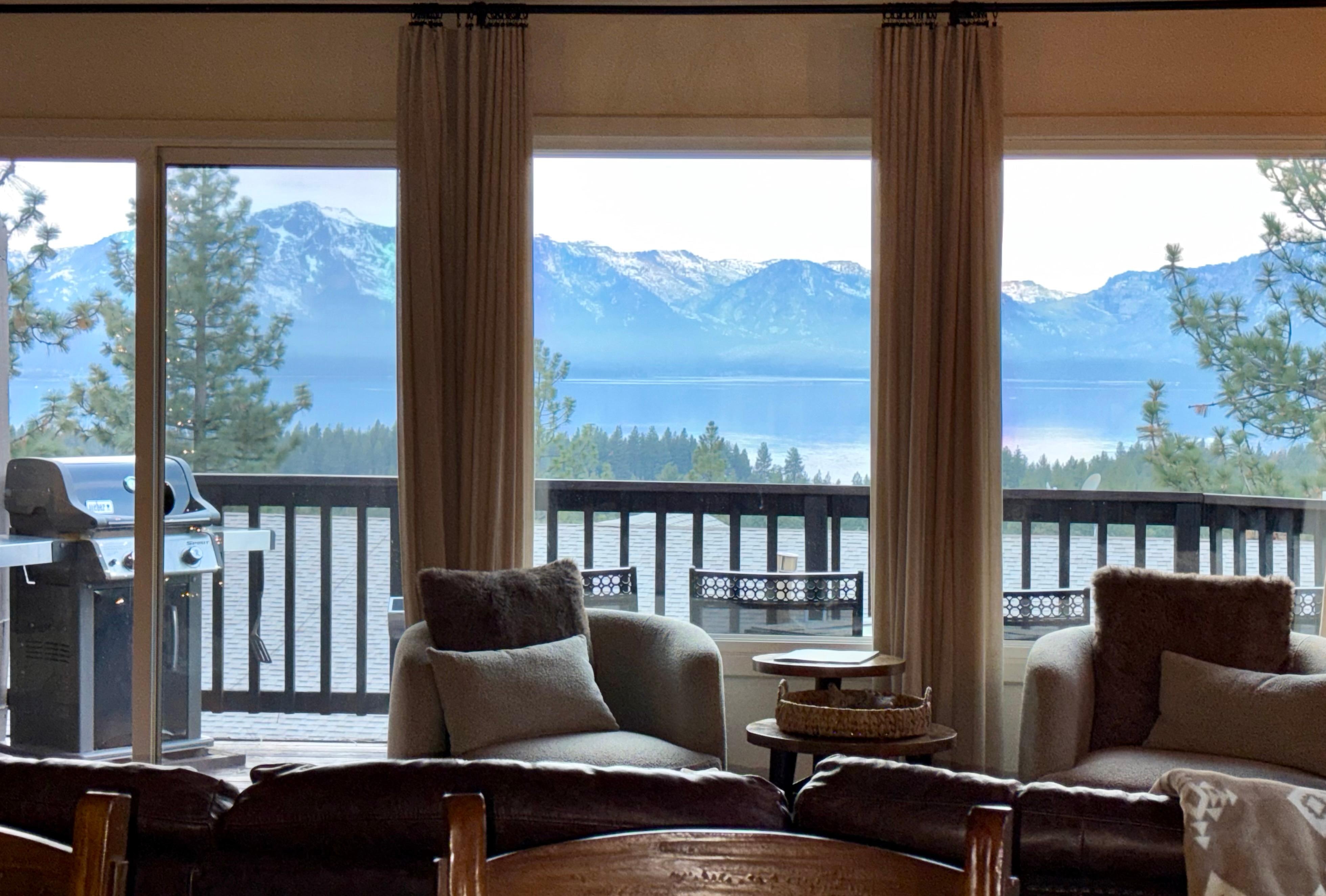 The view is truly spectacular. The small thoughtful touches make guests feel truly welcome. The decor is modern but also has vacation cabin warmth that is so much nicer than a hotel. The kitchen is WELL stocked and then some (waffle maker, airfyer, nice pots and pans, extra spices and kitchen staples etc etc).10 minute drive to south Tahoe restaurants/marinas and 45 minutes to Sand Harbor (where we used the provided beach chairs). All this and coffee (and cocktails!) with that view in the background ...perfect!