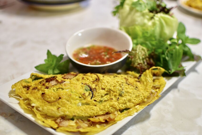 Your culinary experience starts with a delicious starter. Then you have a chance to prepare the delicious pho followed by a variety of other local dishes like rice paper rolls and banh xeo (crunchy flour pancakes).